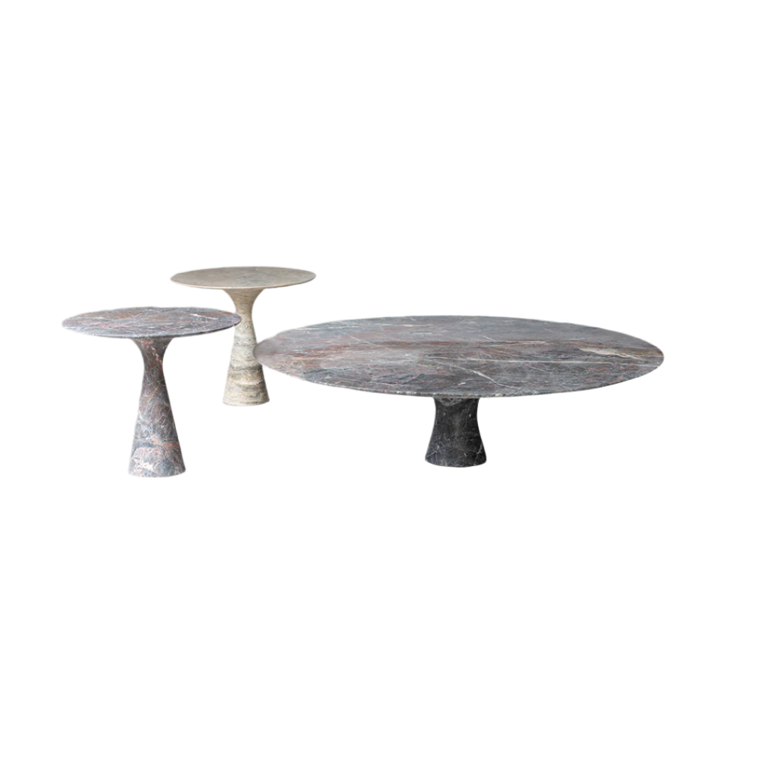 The Ziggy vase was the start of Alinea Design Objects in 1995, the label with which the designs of Leo Aerts are promoted and sold through distributors at home and abroad. Ziggy became a huge success with more than 15.000 units sold! The UFO servingset and champagne cooler / flowervase Zubazuba followed shortly thereafter. You will find the Visible showcase far beyond Europe. This collection is now being expanded with Angelo M, a collection of round and oval tables in various marble types and finishes. With this, Leo Aerts once again shows himself as a versatile designer who has mastered his craft to perfection. An interesting addition to the Alinea Design Objects collection.