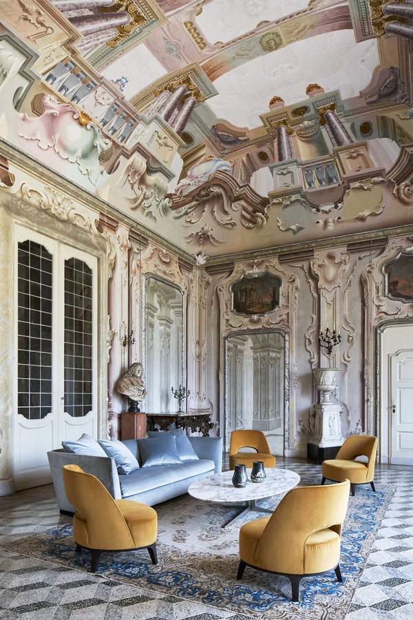 In 1959, the Galimberti brothers opened an artisan workshop, called “Flexform di Galimberti.” It was soon followed by their first showroom where the sofas and armchairs on display found their way, in the postwar era, into elegant buildings in Milan, villas overlooking Lake Como, and even the foyer of the Teatro alla Scala.