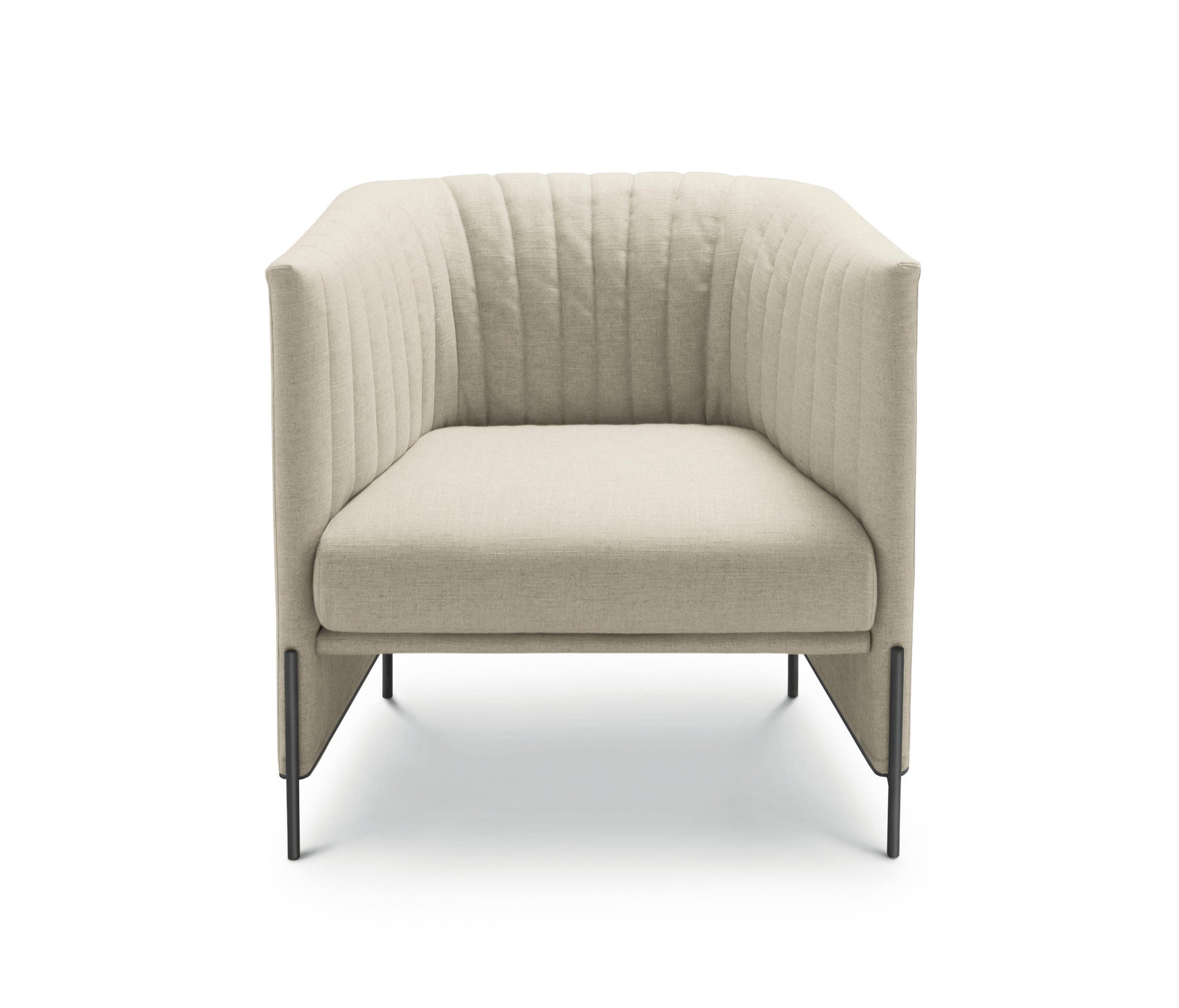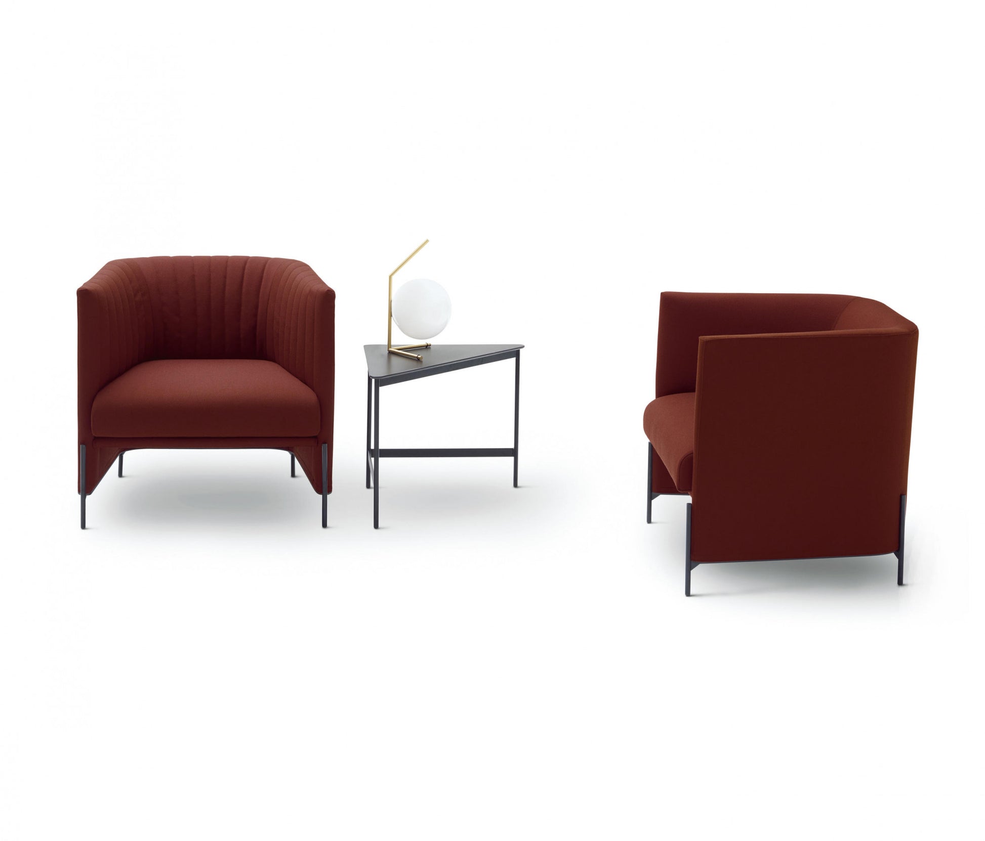 Algon is a series of armchairs with an embracing shape, that offer intimacy and privacy to the person they welcome.