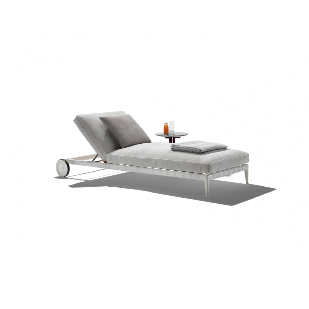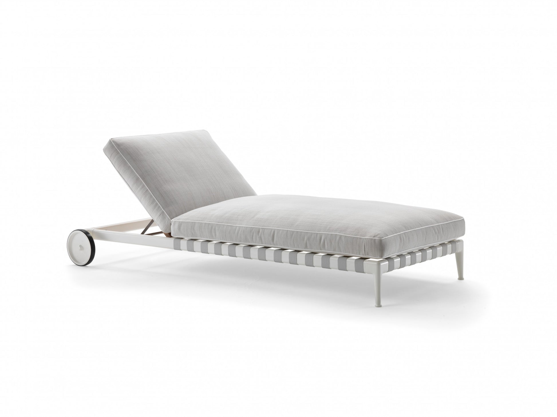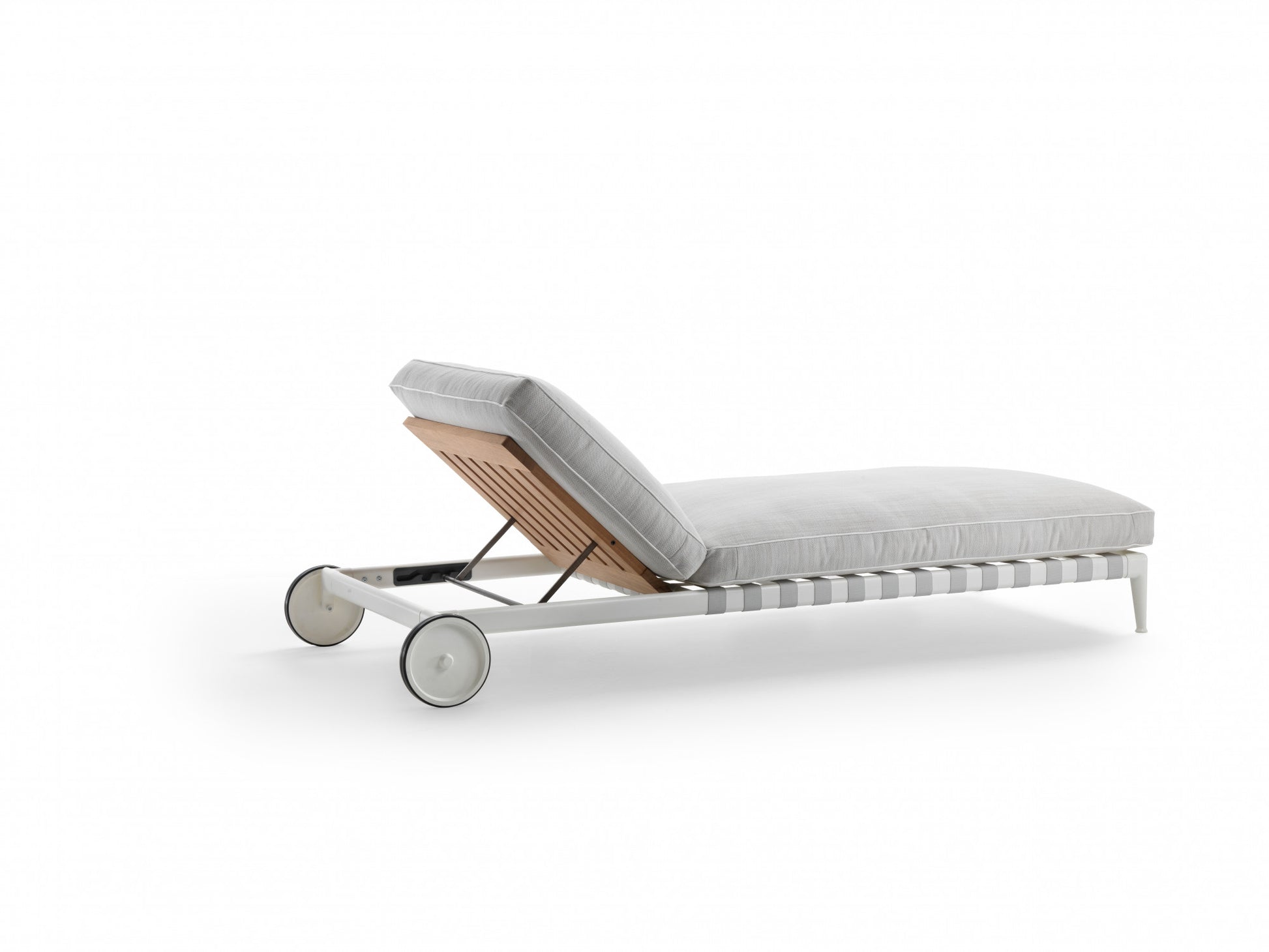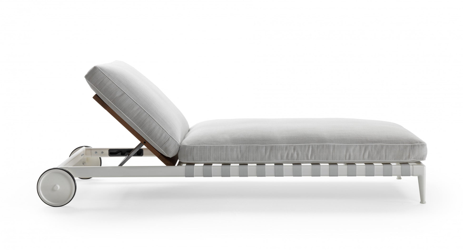 Its many craftsmanship details underscore this daybed’s impressive talent for personalization. The metal base has an epoxy powder-coat finish in a series of sophisticated shades, while the water-repellent elastic webbing comes in white, sand, grey and anthracite colors to create elegant contrasts or subtle tone-on-tone pairings.