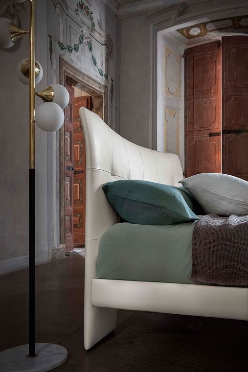 With the Aurora Due bed, designer Tito Agnoli offers his seductive take on the bedroom. The headboard is large and inviting, decorated with delicate stitching to form a modern capitonné with a 19th century feel. The Aurora Due bed is also available in a version with a spacious storage unit.