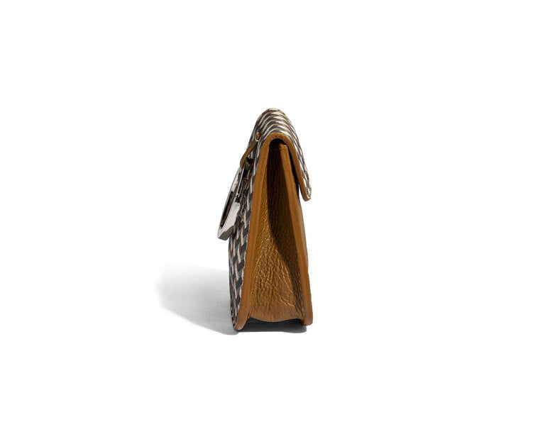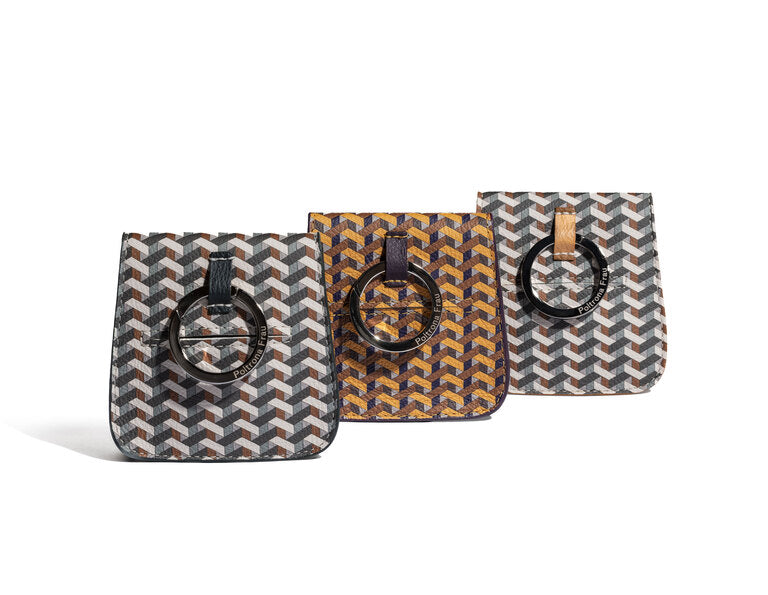 The biscuits pocket is made of Pelle Frau® leather and is the ideal accessory for holding snacks and hygiene bags. The flap closure is made of Pelle Frau® Motif Weavers leather. It can be conveniently attached to a leash, key ring, dog bag or pant loops thanks to its galvanized zamak carabiner.