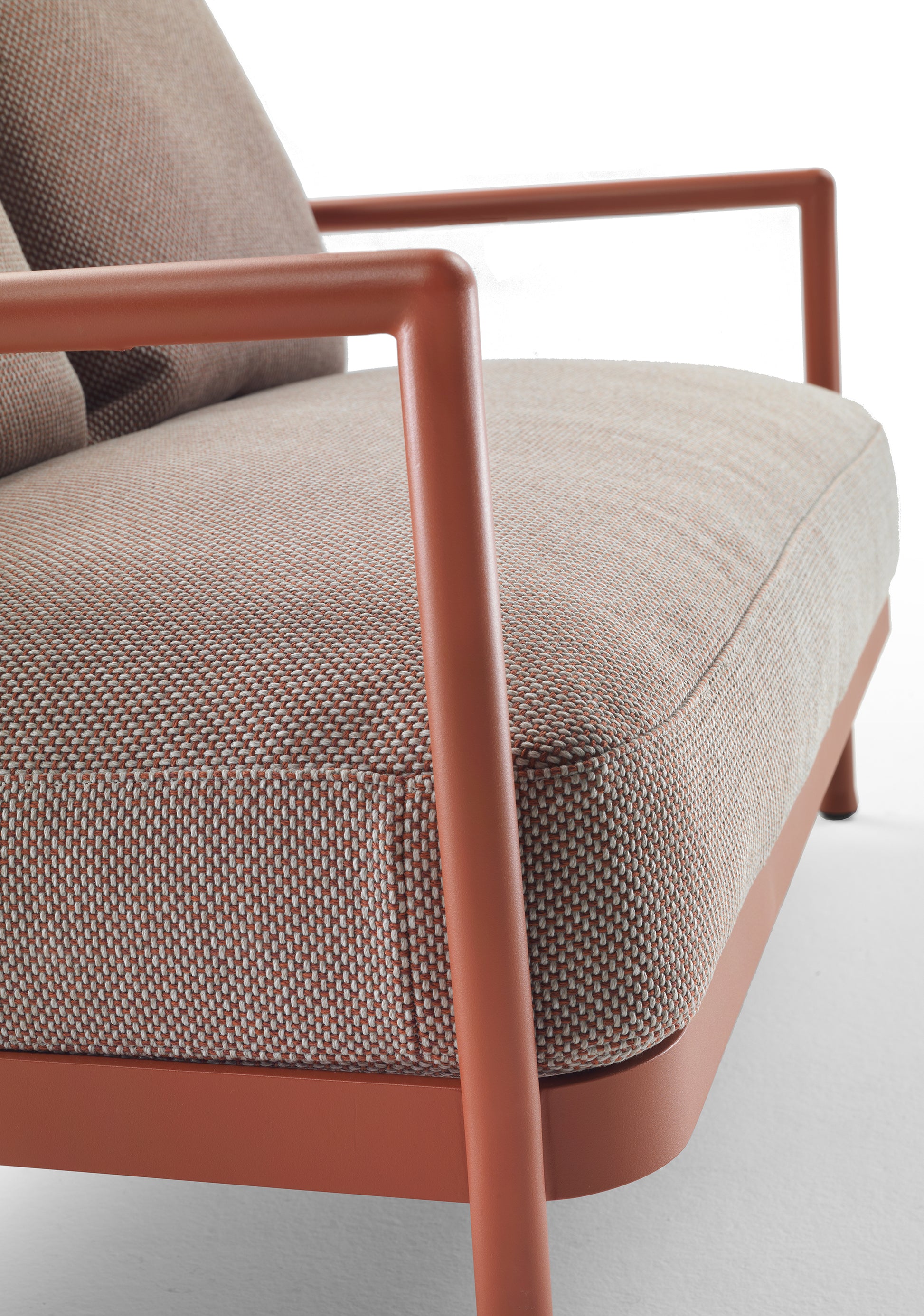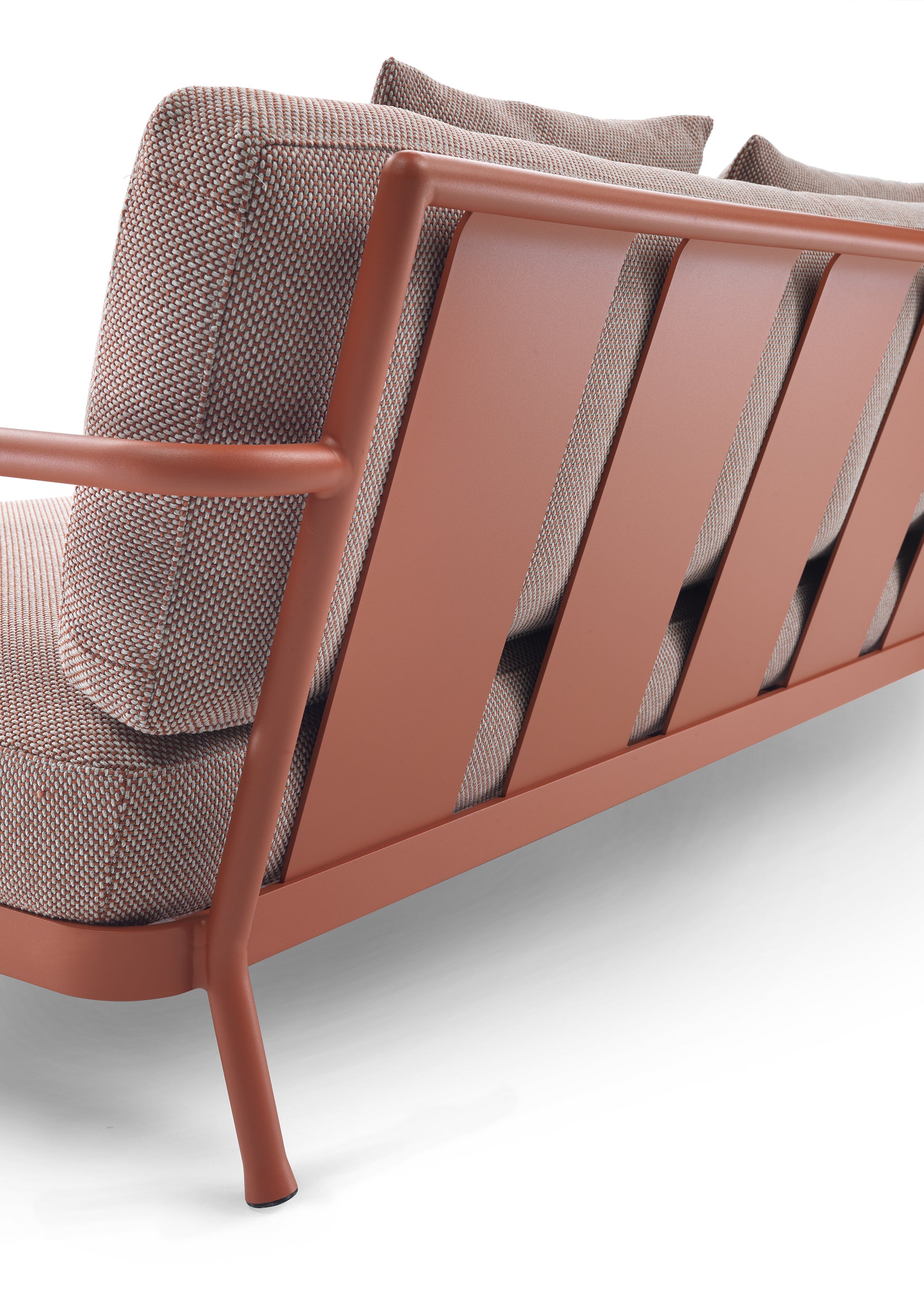 It comes with either smooth or embossed epoxy powder-coat finish, in a palette of elegant colors that lend themselves to sophisticated pairings with the removable upholstery on the soft seat and backrest cushions.