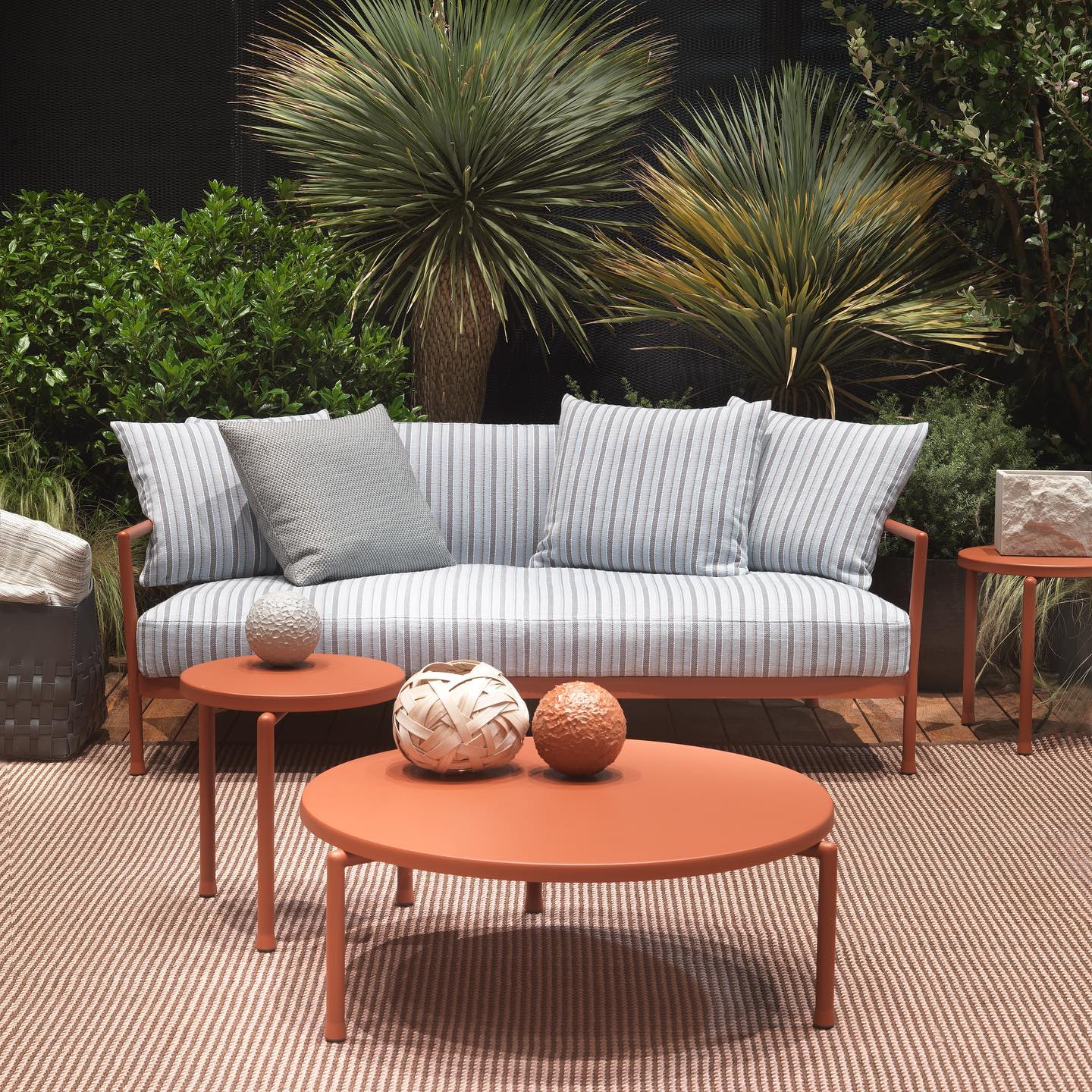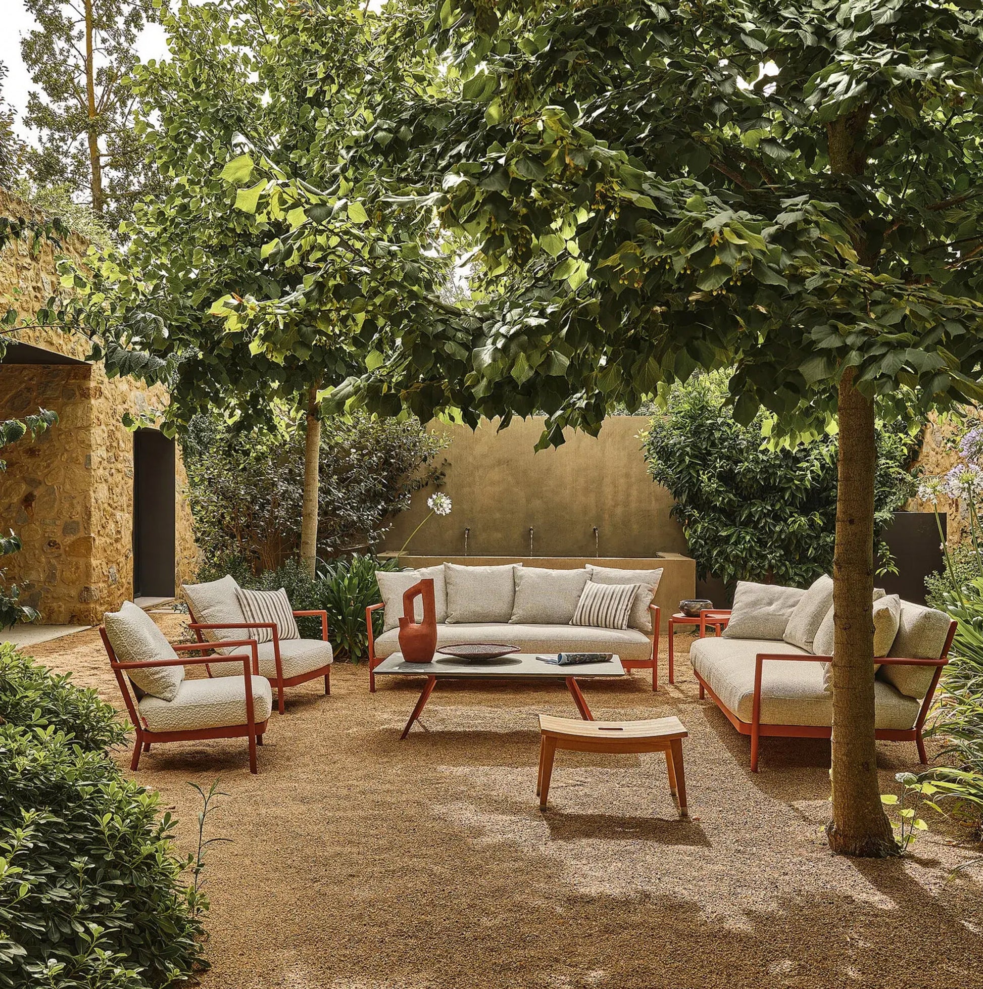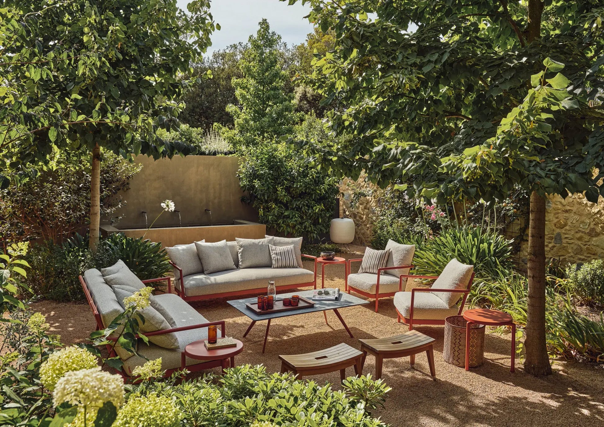 The Camargue family is distinguished by its enduring style, in both form and substance, thanks to the properties of aluminum, a material that allows the Camargue pieces to be at home anywhere outdoors, not necessarily under a roof, hence, not only on a covered patio or terrace but also in a garden or around a pool.