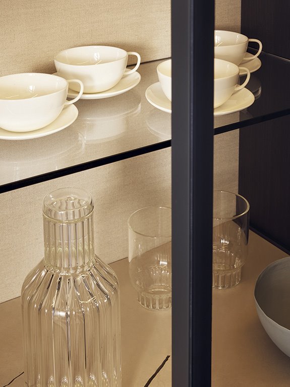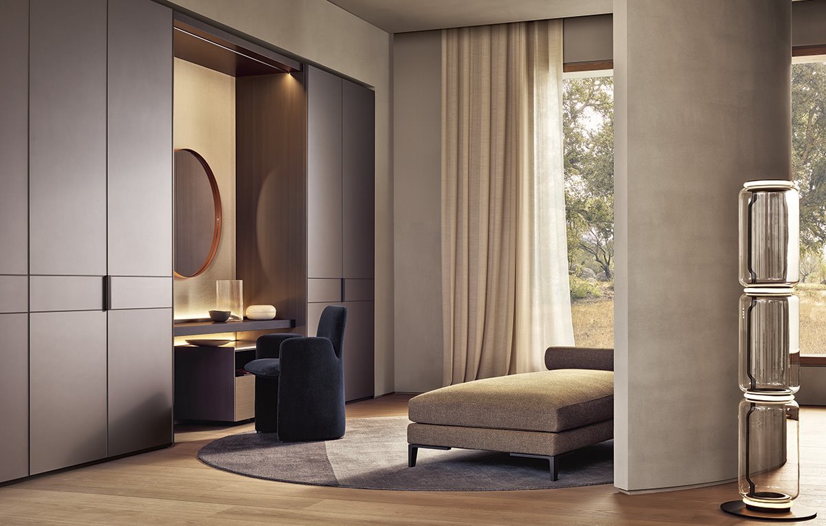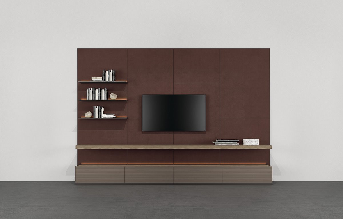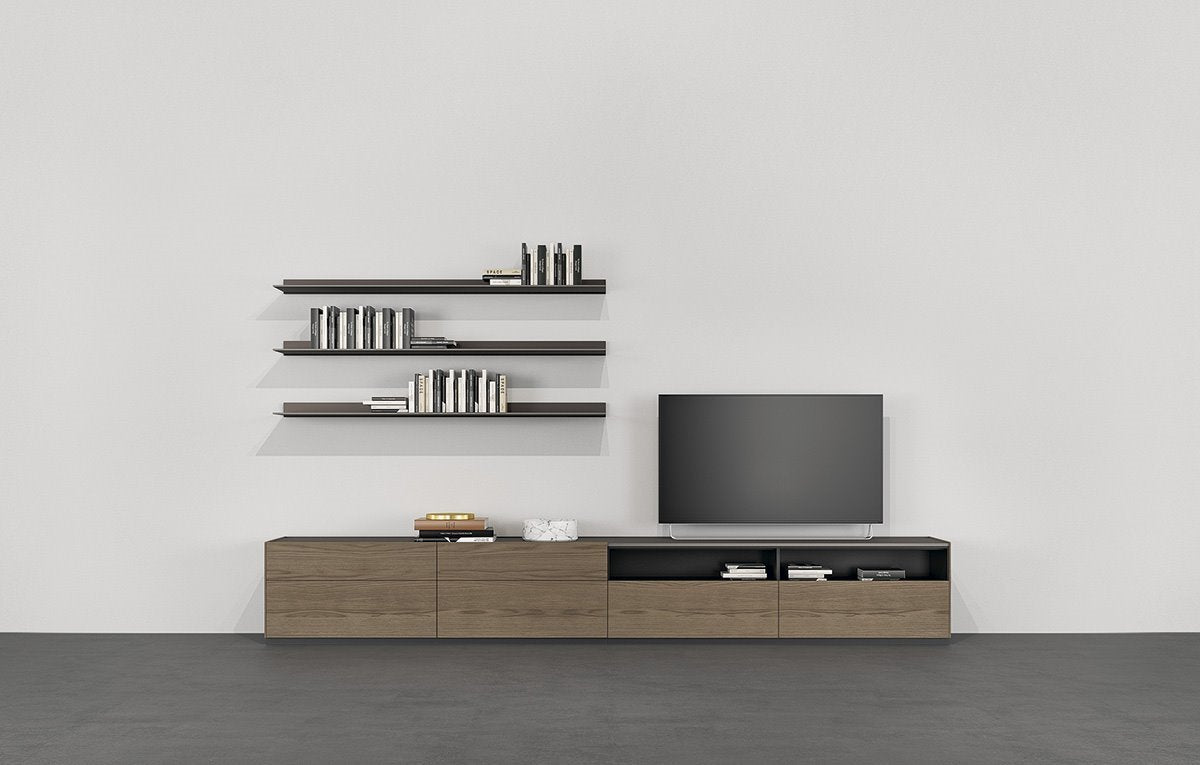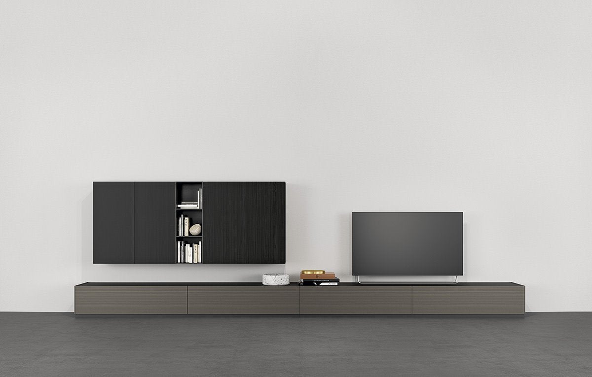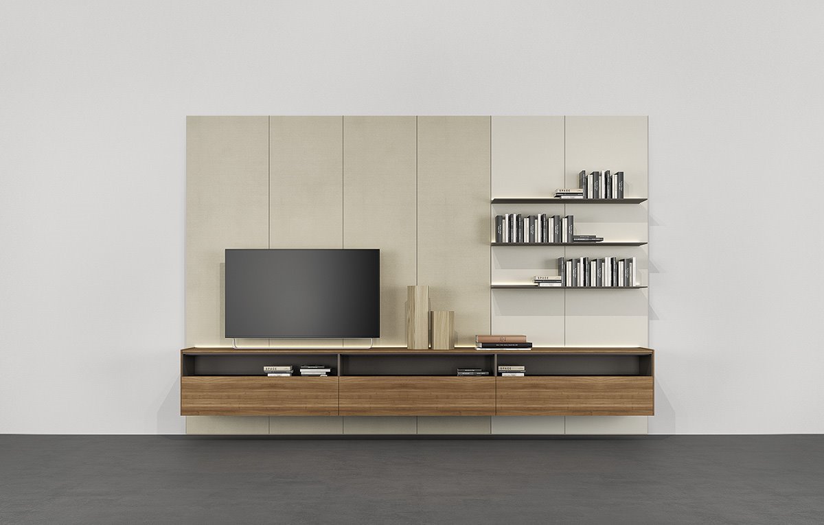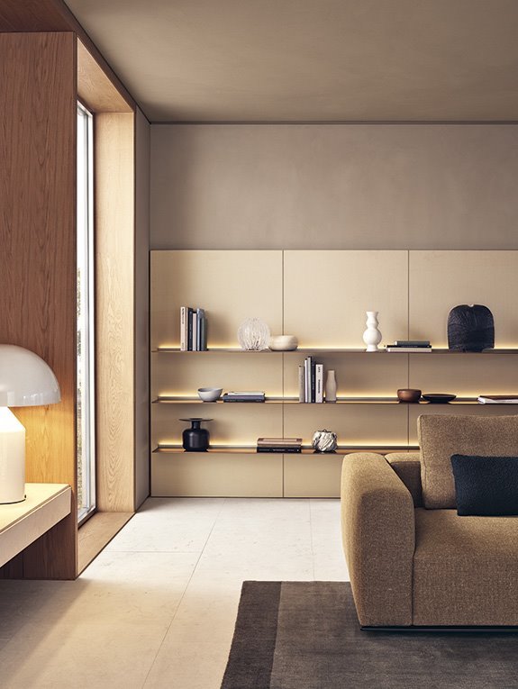 Code is a versatile system that offers unprecedented freedom of design. Conceived for the contemporary living room, it also extends to the night area, where boiseries, suspended containers, and shelves are reinterpreted as standalone elements or in combination with wardrobes and walk-in closets.To complete the system, a collection of sideboards to be freely configured – choosing between open compartments, showcases, drawers, hinged or flap doors. The versatility of the system is also expressed through the variety of finishes, to customize down to the individual component.