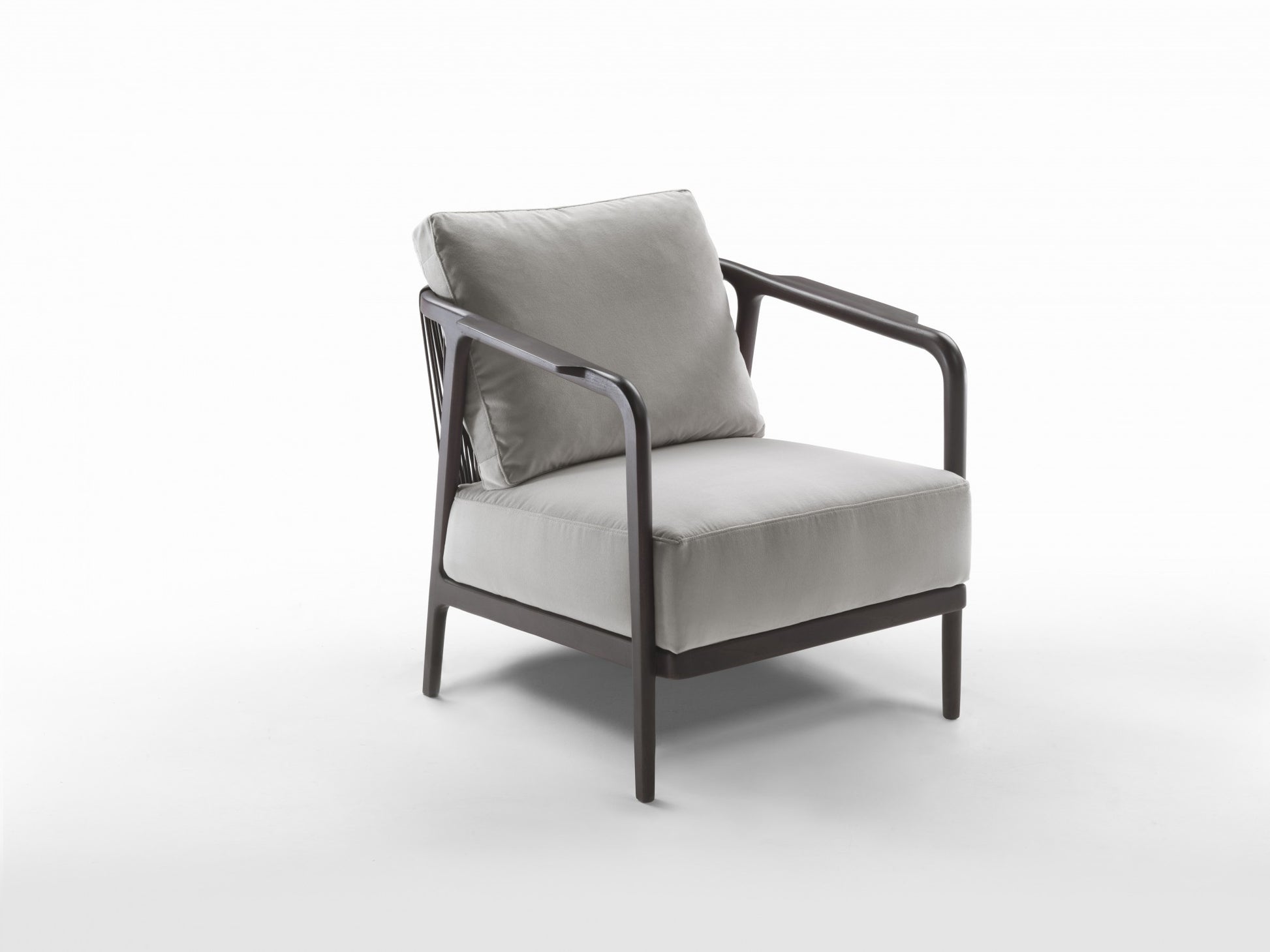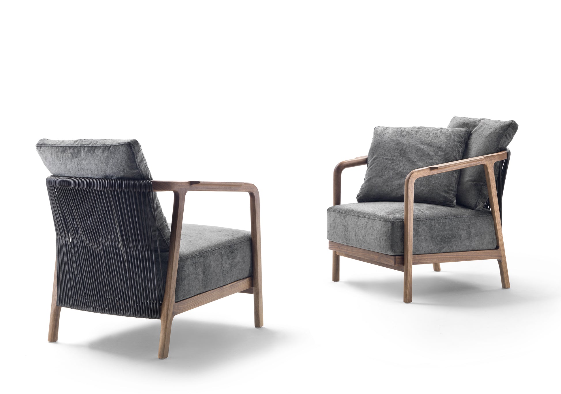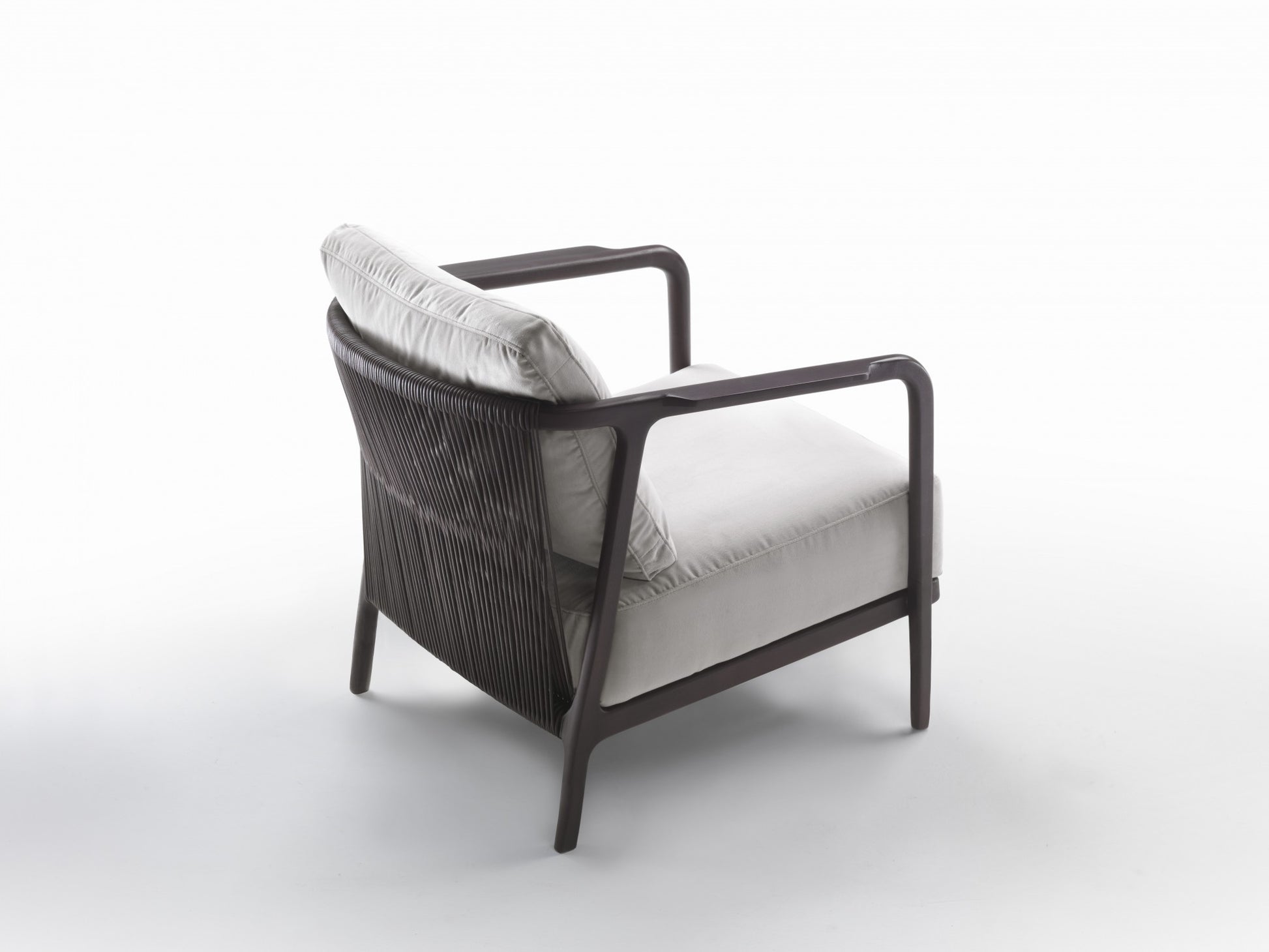 Graceful proportions and a sophisticated design place the Crono armchair in a class of its own. The visually-light but solid wood structure, available in various shades, isplays the kind of workmanship that clearly expresses the company’s flair for embracing the heritage of Italian cabinetmaking tradition as its own. As unique as it is sophisticated, the seat back is entirely hand-woven in a design made from cowhide cord; the seat back is rendered even more comfortable with the addition of a soft, goose-down-filled cushion. The seat is made of polyurethane foam, covered in a laminated fabric and the upholstery – in fabric or leather – is removable.
