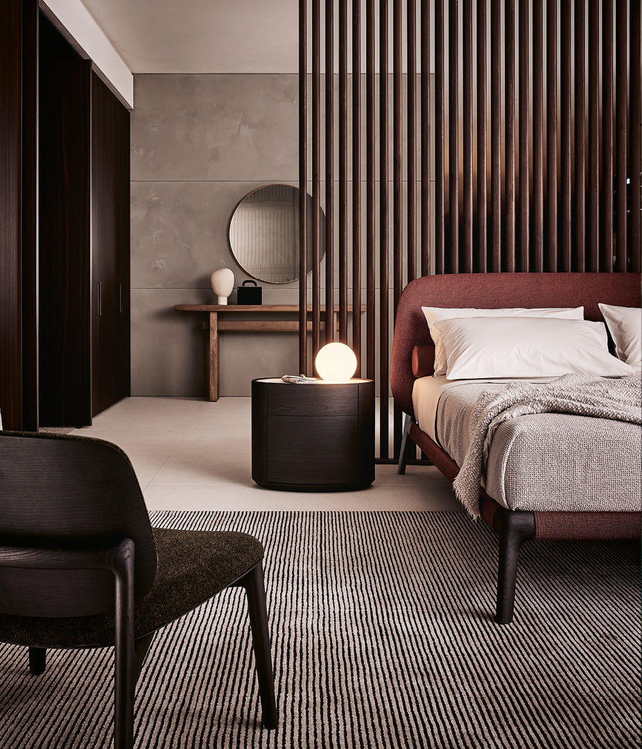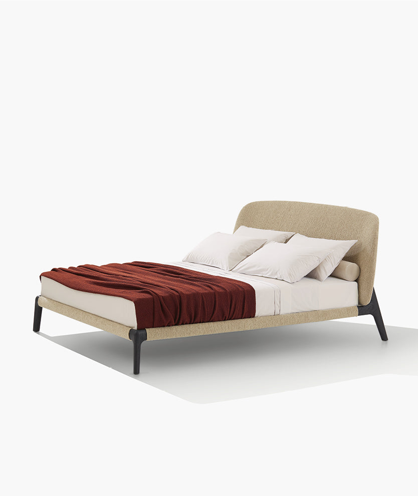 Curve was born from the need to create a light and essential bed, which embodies Poliform’s distinctive elegance and timelessness. Emmanuel Gallina’s work continues in the vein of the Curve collection, stripping down the material to achieve a delicate and contemporary lightness. The padded headboard, upholstered in fabric or leather, is extremely soft and comfortable.