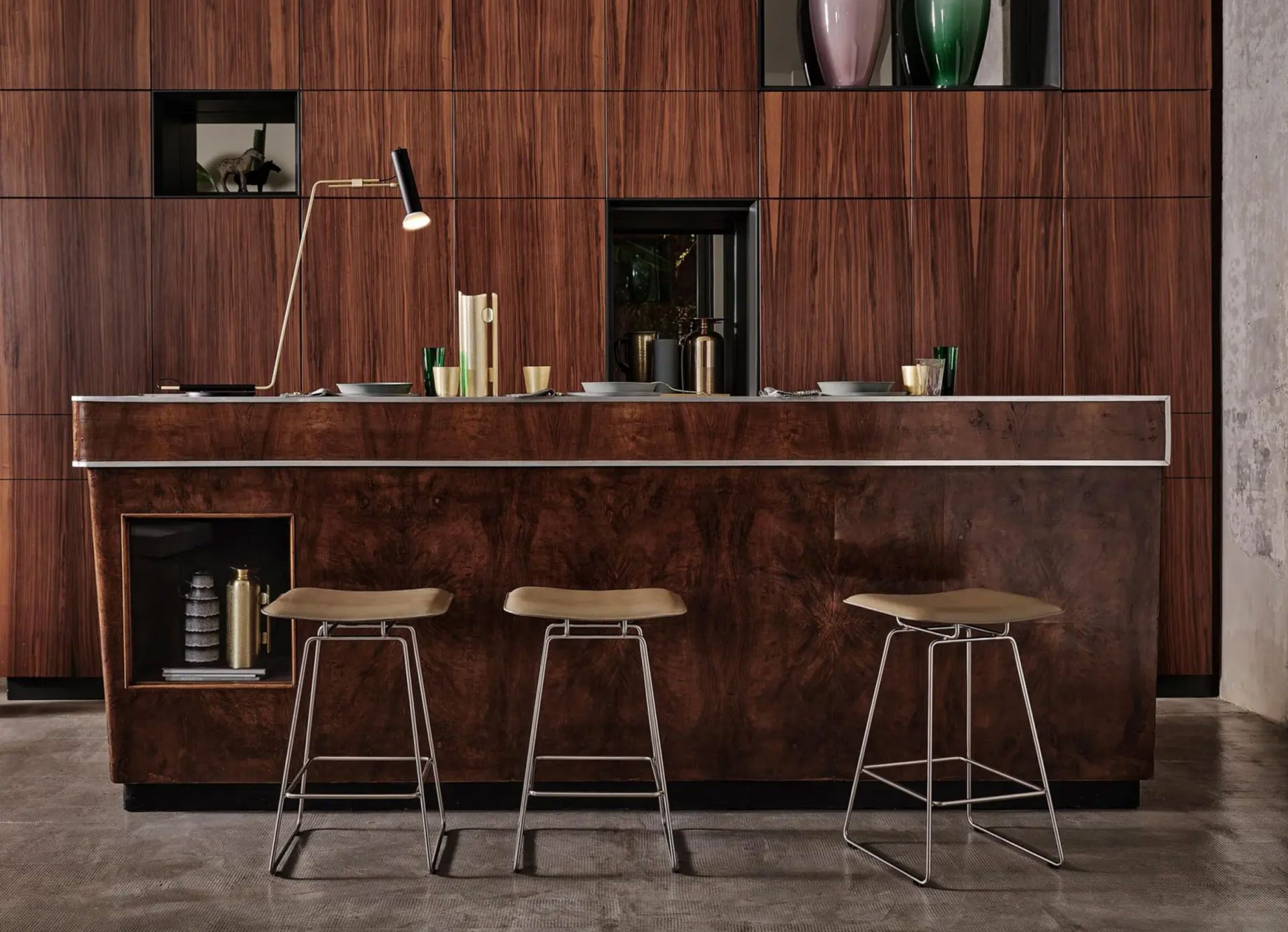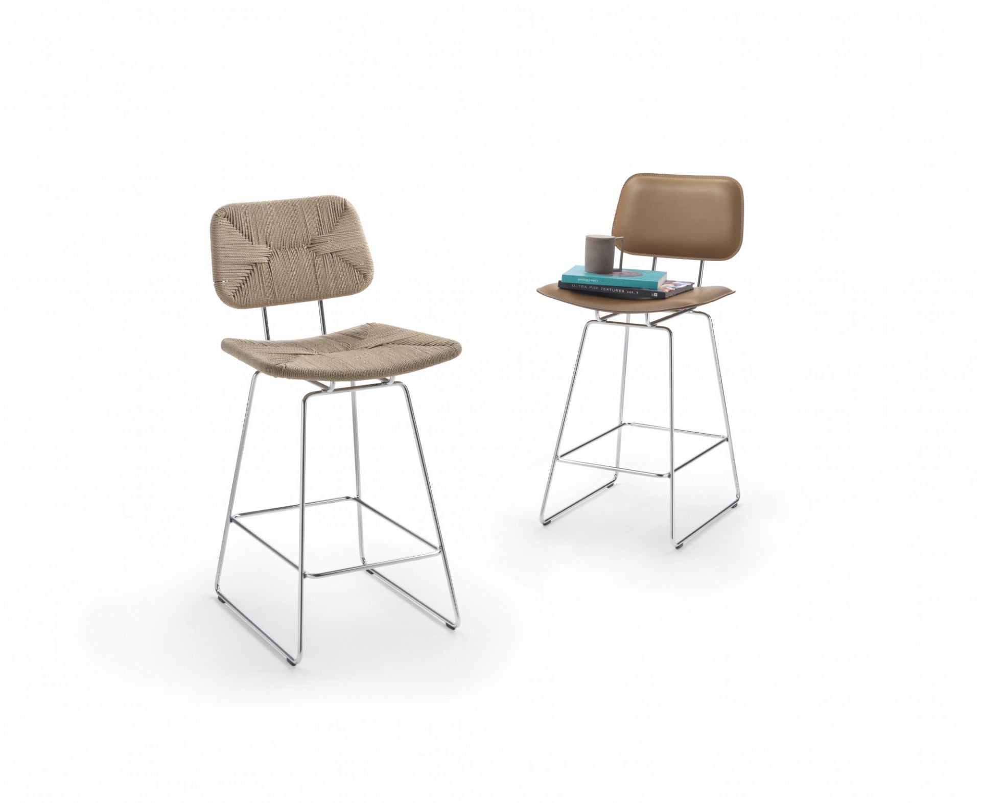 A different stylistic interpretation is expressed by the Echoes S.H. chair and dining chair that pairs the metal structure with cowhide: a classic, eye-catching combination but one that, thanks to the ergonomic contours of the seat and backrest, also ensures the utmost in comfort.