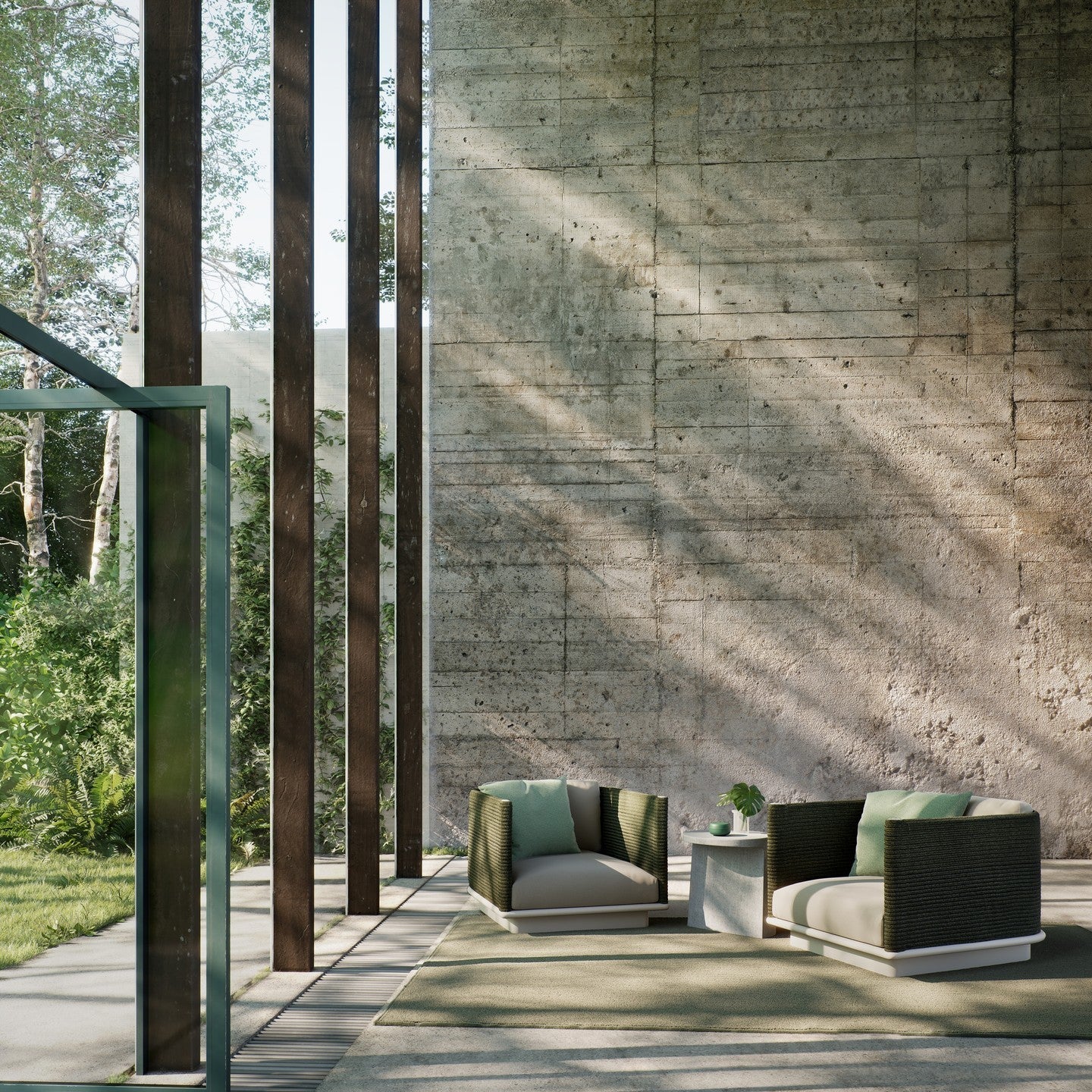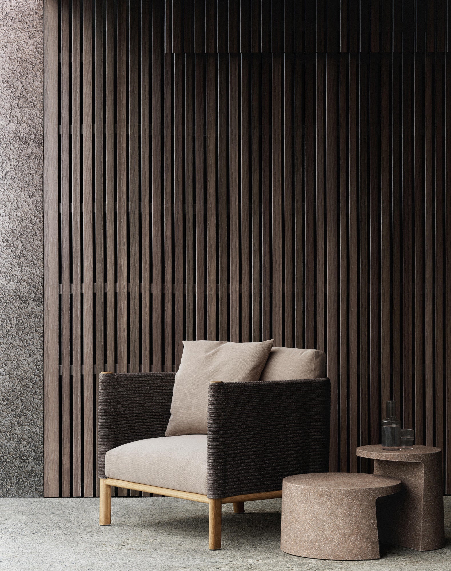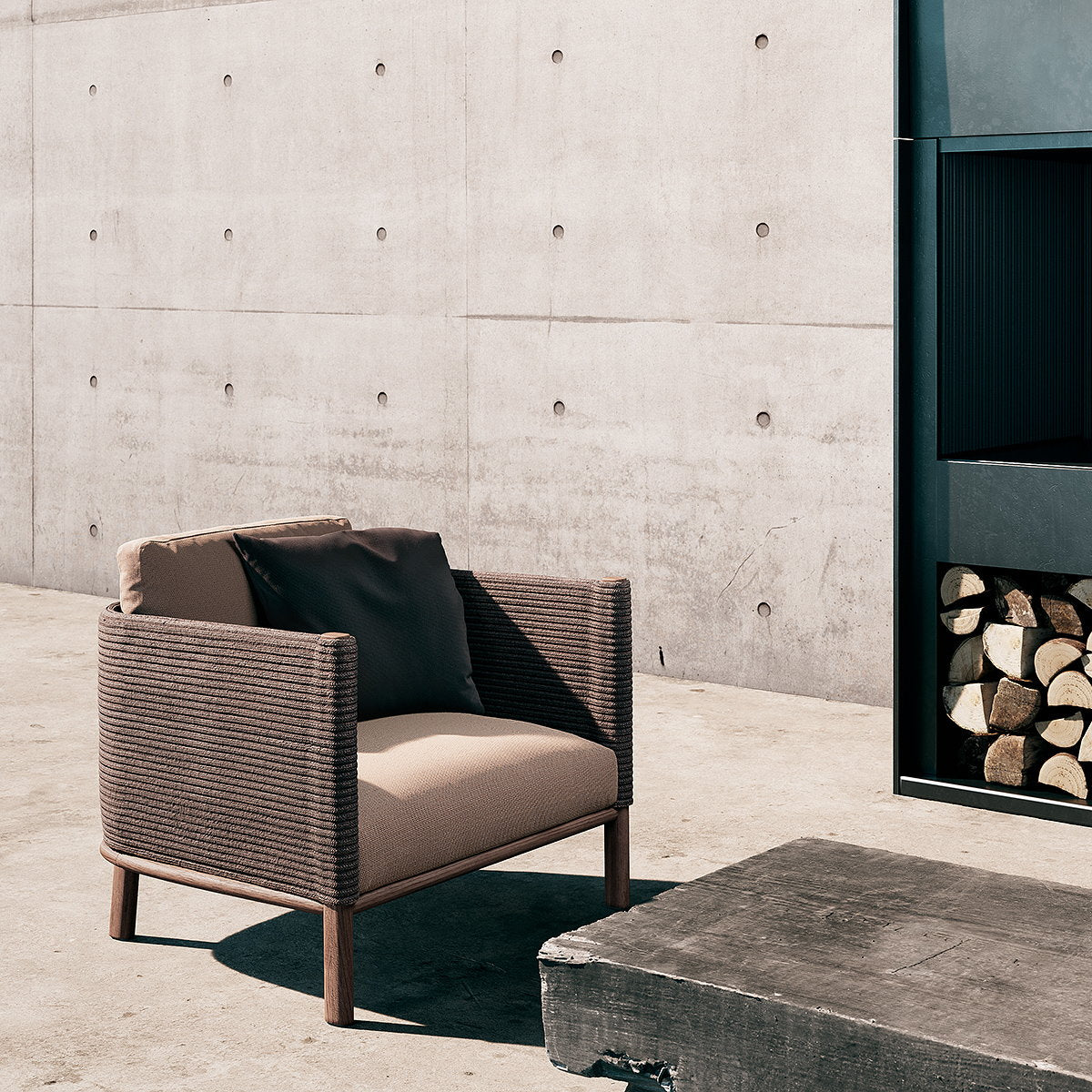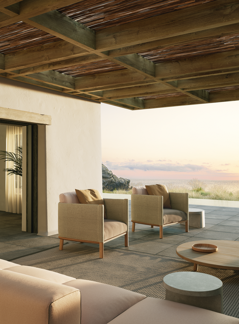 Giro is a collection which can blend into interiors and exteriors due to its tactility and pure lines. In Giro, we have some variety of shapes, textures and materials (see the difference between the seating items and the coffee and side tables). And still all the items merge harmoniously together to create a warm, tactile and pleasant atmosphere.
