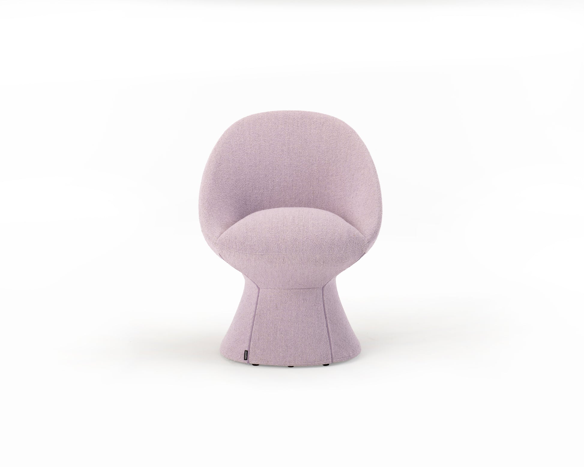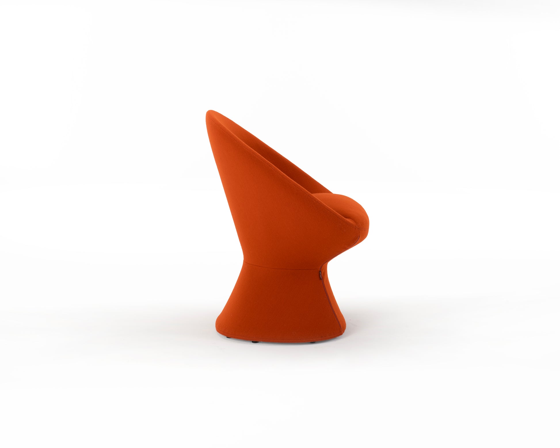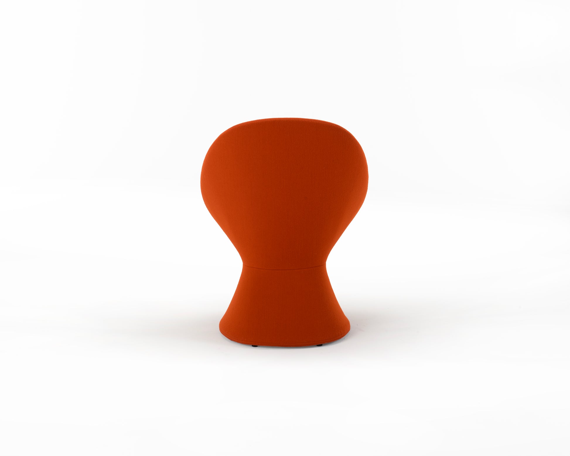 Small armchair. Steel frame. Frame upholstered with self-extinguishing polyurethane foam. Seat cushion upholstered with regenerated and regenerable polyester balls. Removable fabric cover. The small armchair is available in a fixed or swivel version.