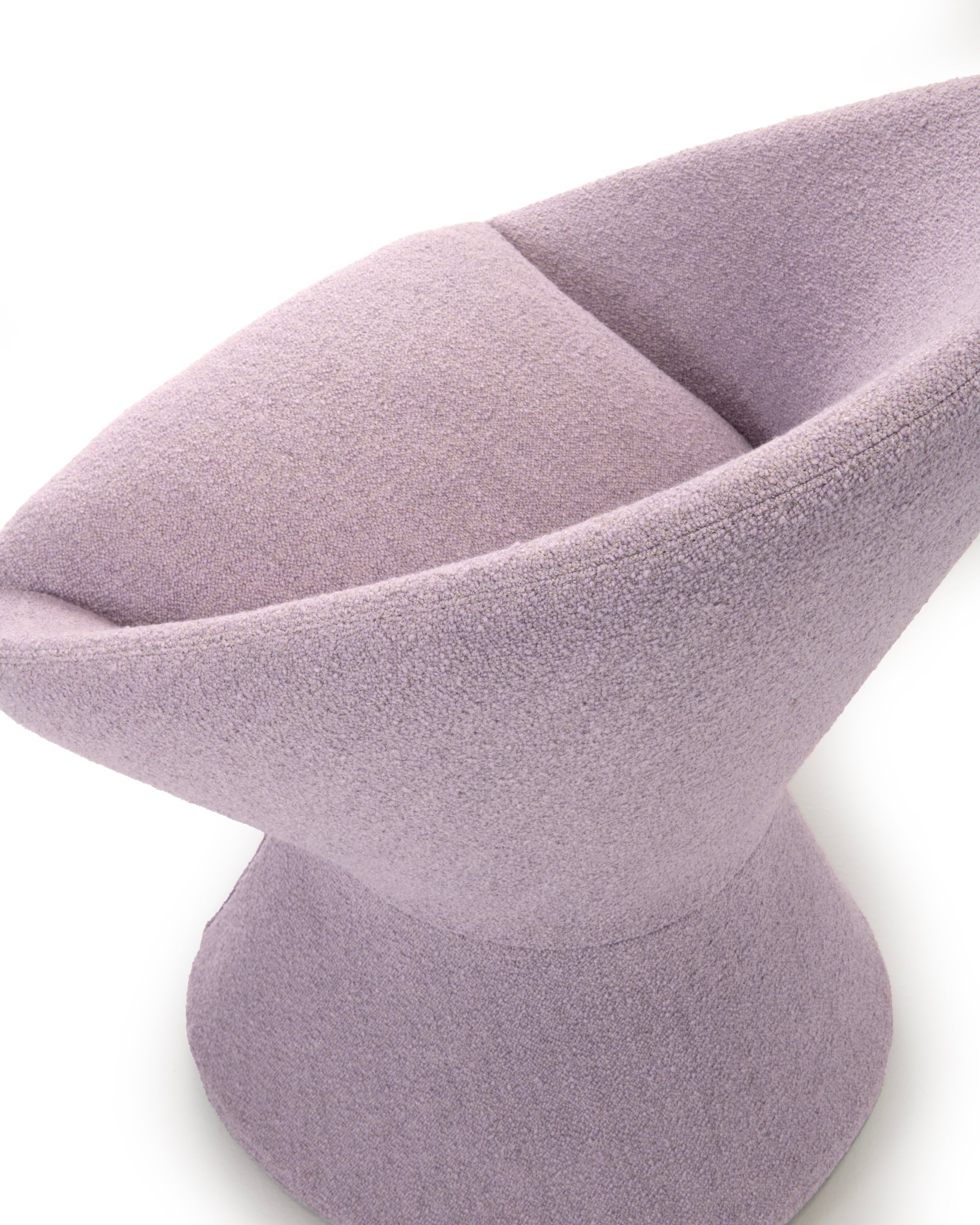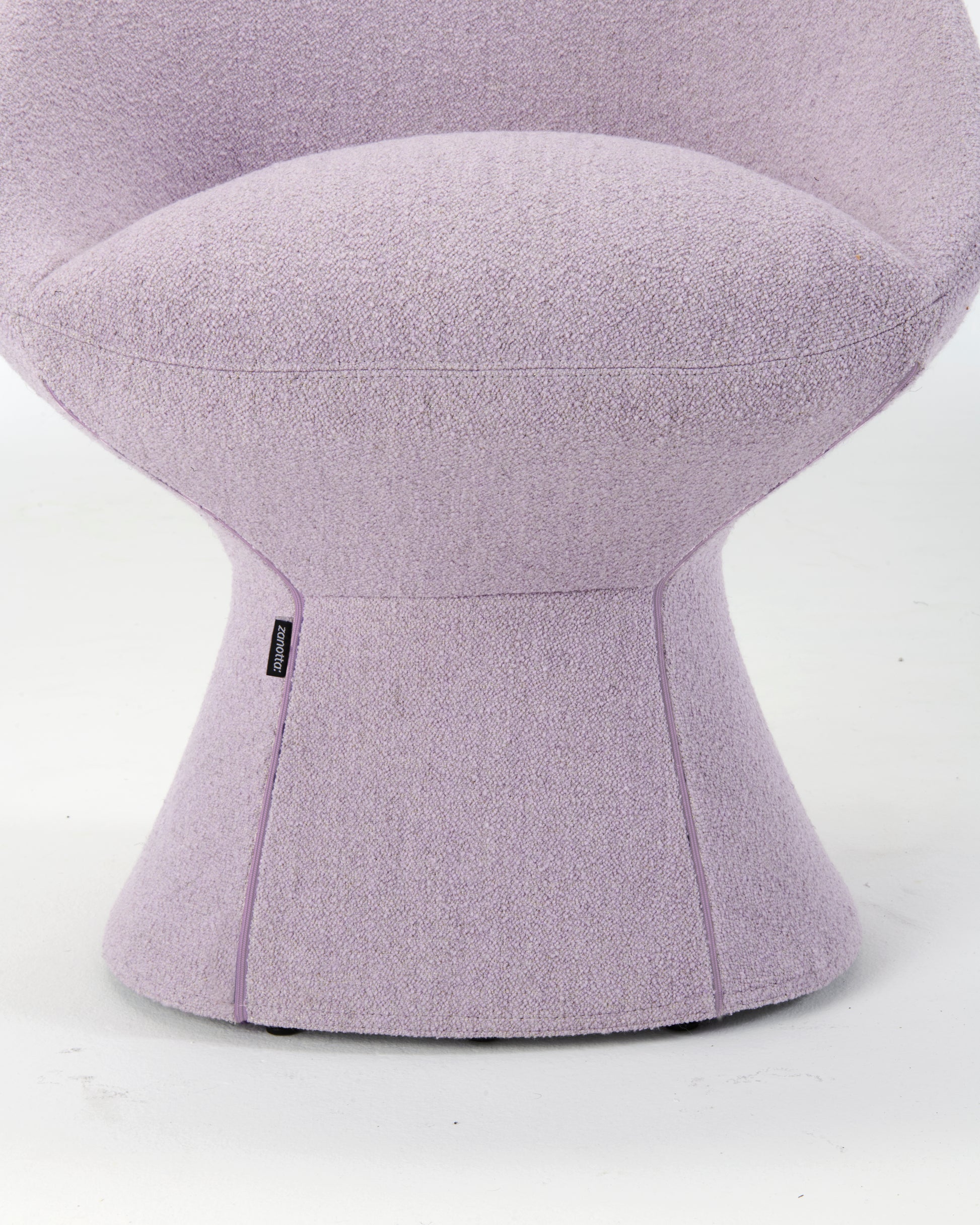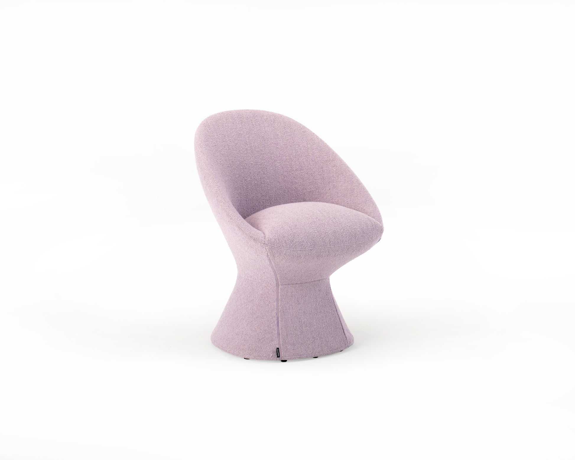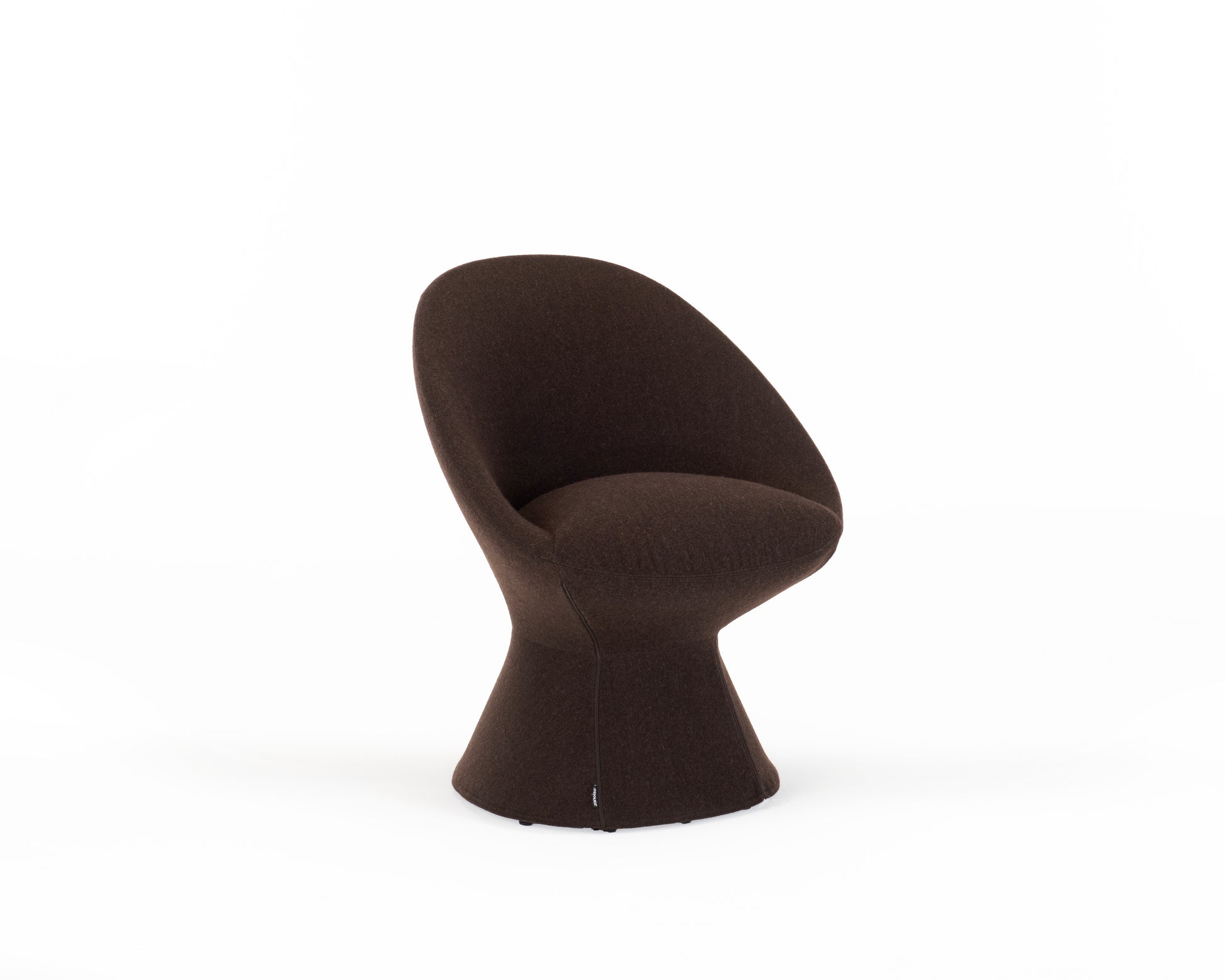 Small armchair. Steel frame. Frame upholstered with self-extinguishing polyurethane foam. Seat cushion upholstered with regenerated and regenerable polyester balls. Removable fabric cover. The small armchair is available in a fixed or swivel version.