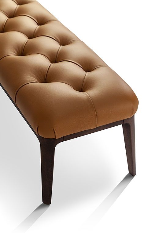 In reality, it was deliberately designed this way, acting as a natural complement for the new 2019 armchair. In fact, its soft Pelle Frau® leather seat is enriched with handmade detailing identical to that on the armchair’s backrest, the capitonné processing that has come to symbolise the quality and artisan expertise of the Poltrona Frau brand. The personality, great harmony and balanced proportions of the Glenn pouf make it an independent and versatile item of furniture that is at home in any setting, whether on its own or combined with other furnishings.