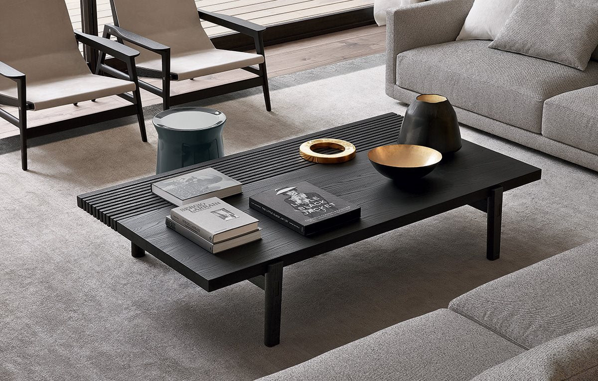 The theme of the Home Hotel coffee tables is versatility. The two versions, rectangular and square, share a wooden top that acquires rhythm thanks to the particular play of strips. Together with the console tables and benches, the Home Hotel coffee tables create a true system, for the house and for accommodation facilities.