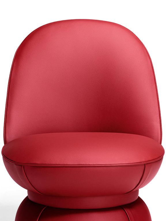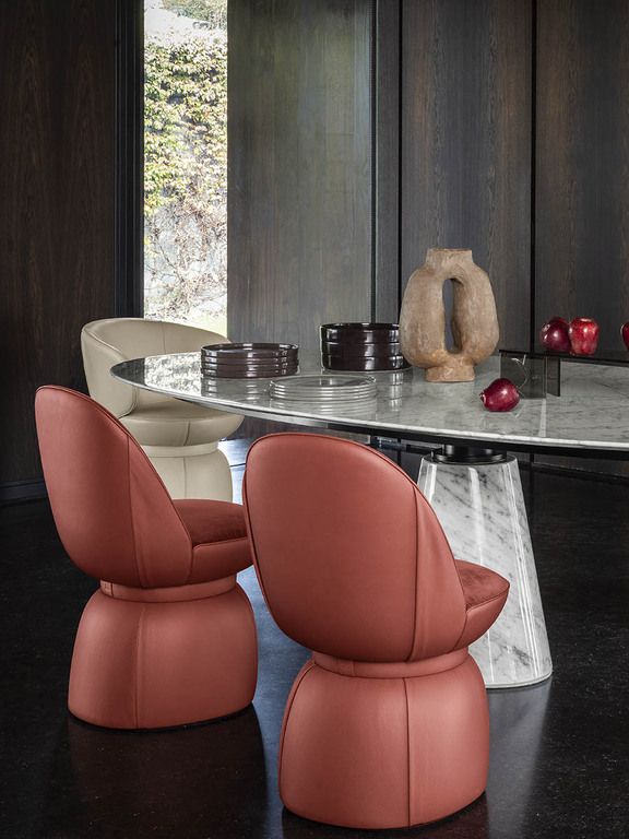 The structure of the Leplì padded chair comes with birch and poplar plywood, with kraft cardboard padding. The backrest structure is made of Polimex® and poplar plywood. The padding is made of polyurethane foam and polyester wadding. The Leplì design chair comes in various combinations of leather and fabric. The base can be fixed, made of MDF painted black and scratch-resistant; rotatable, with ‘return’ mechanism that allows a 360° rotation with return to the initial position; and with wheels, with 5 pivoting wheels inserted inside the base.