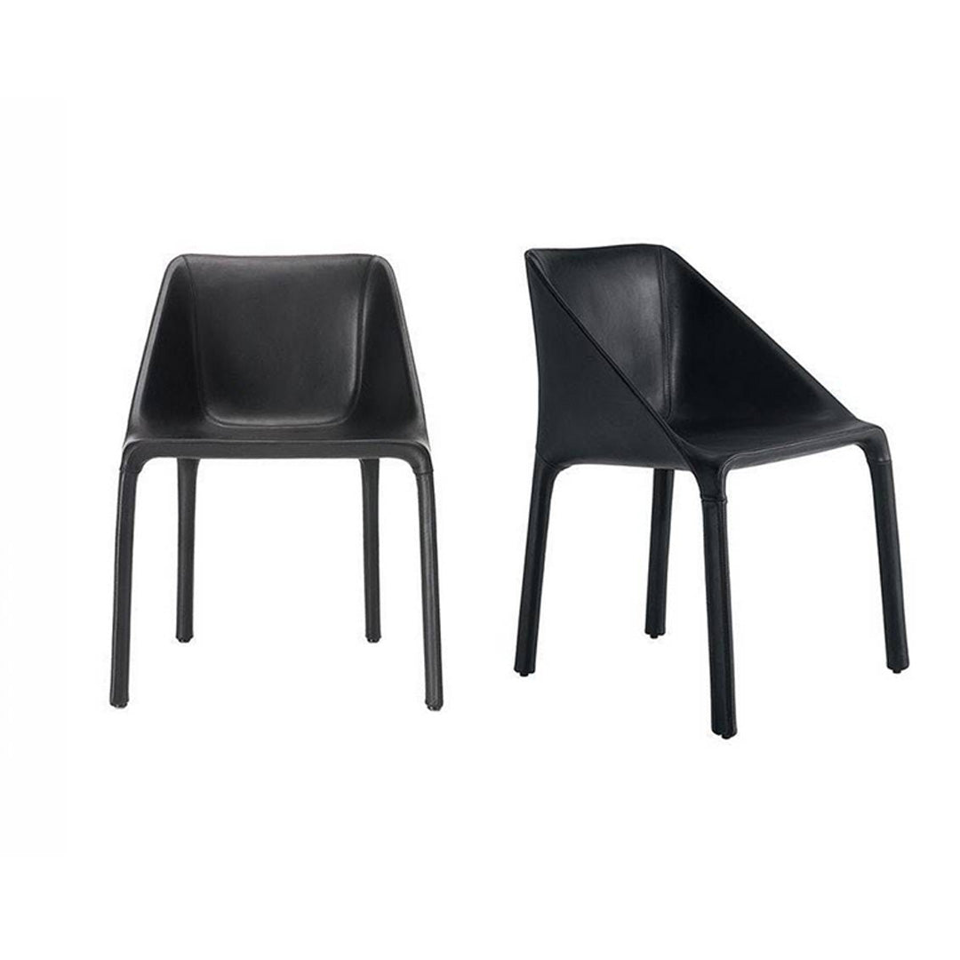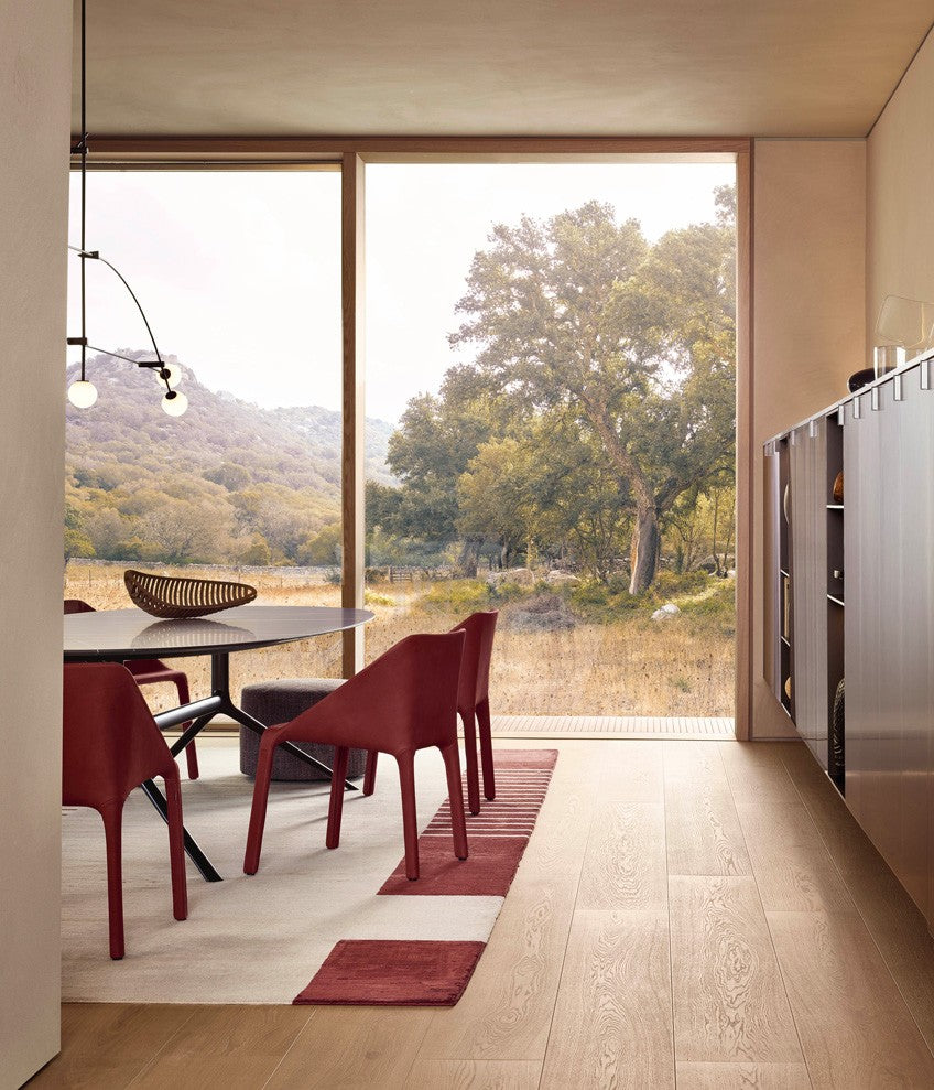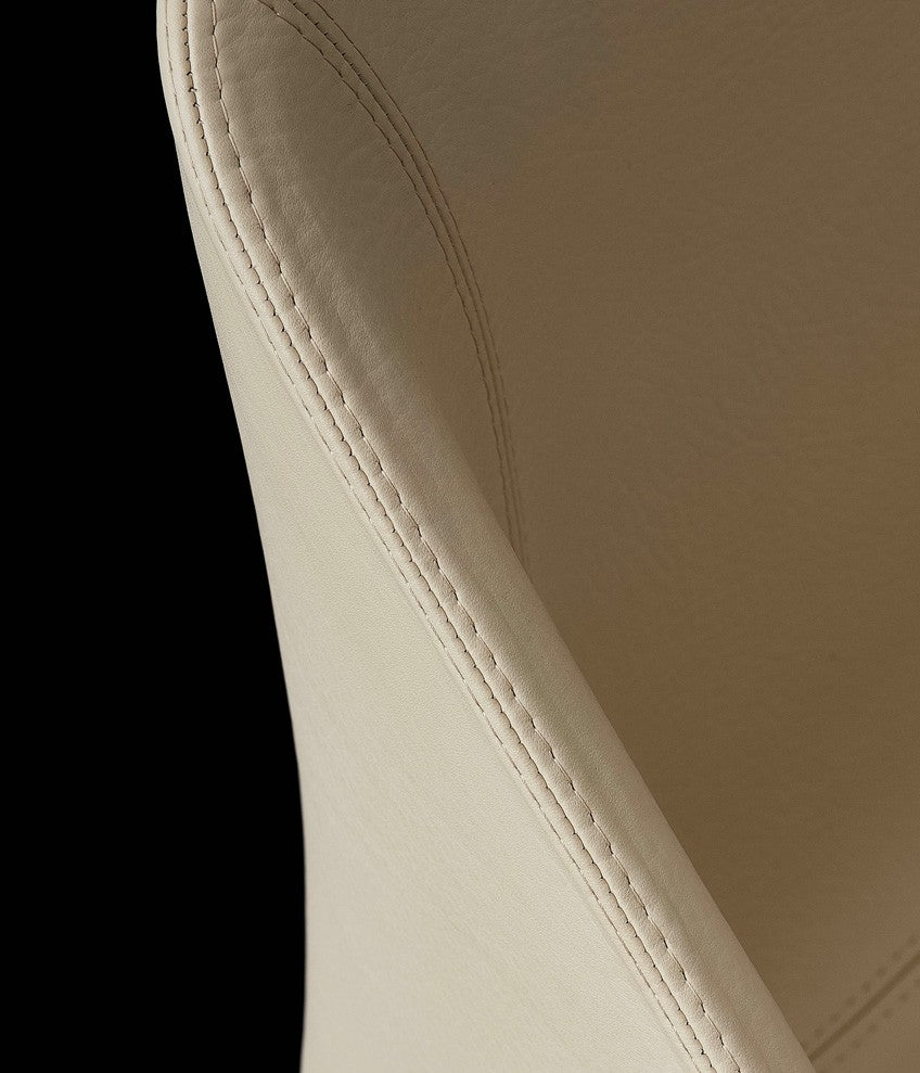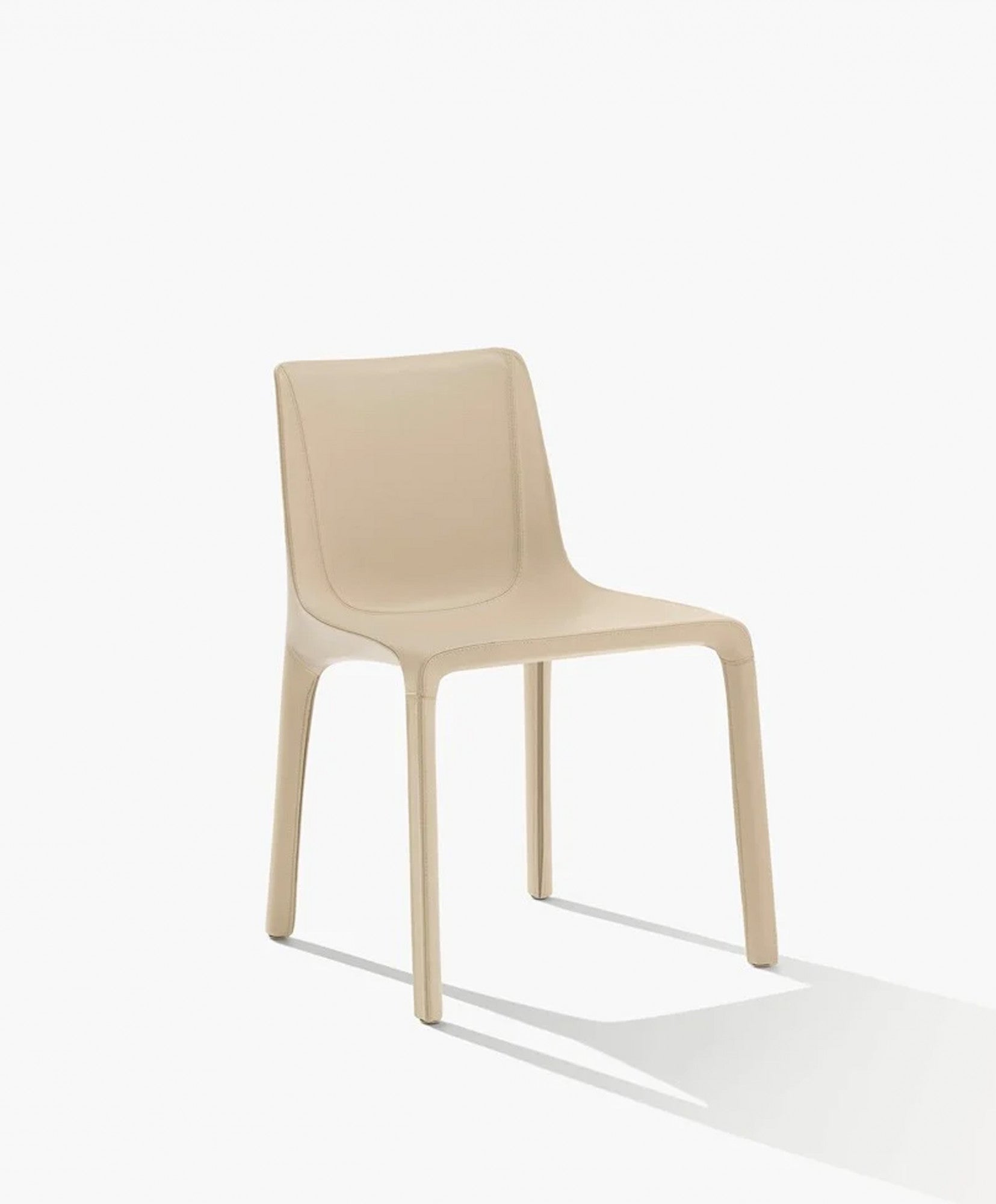 Essential lines distinguish the inviting and comfortable Manta chair. It is available in two versions, with or without armrests. Completely padded and upholstered in leather, Manta is perfect for complementing imposing tables. However, thanks to its characterful presence, it can also be used on its own as a desk chair.