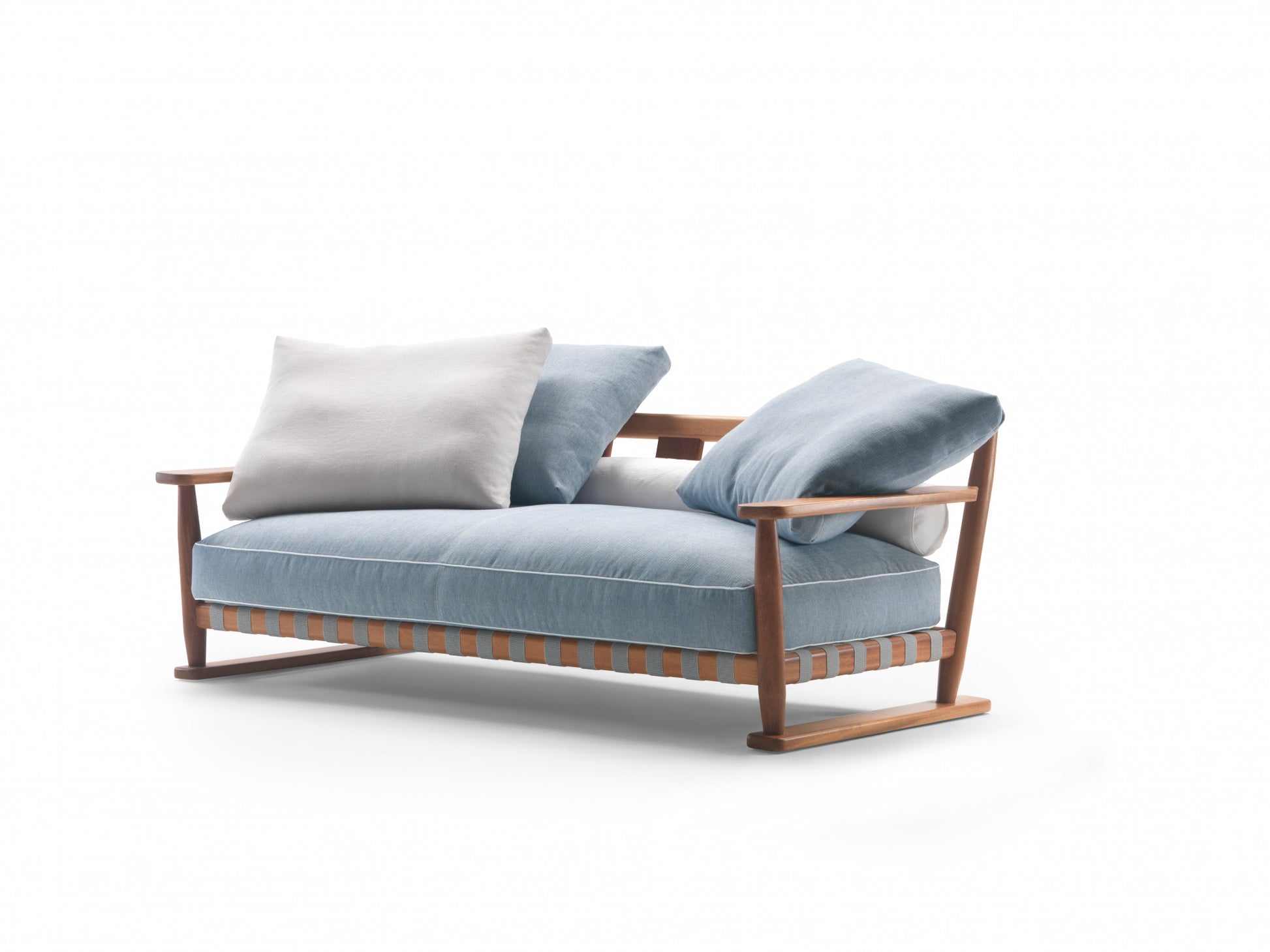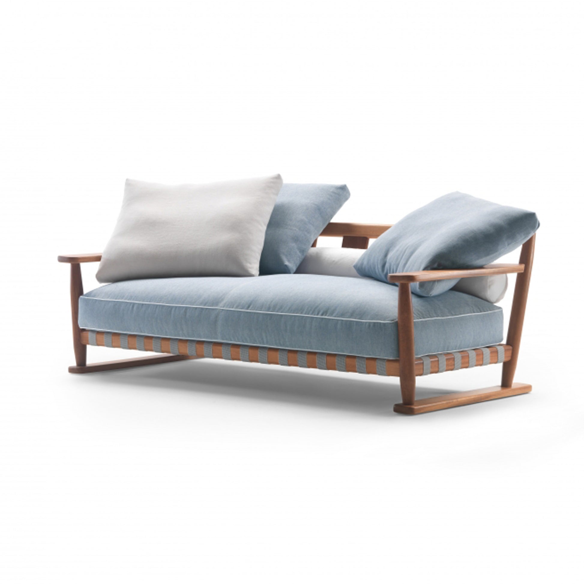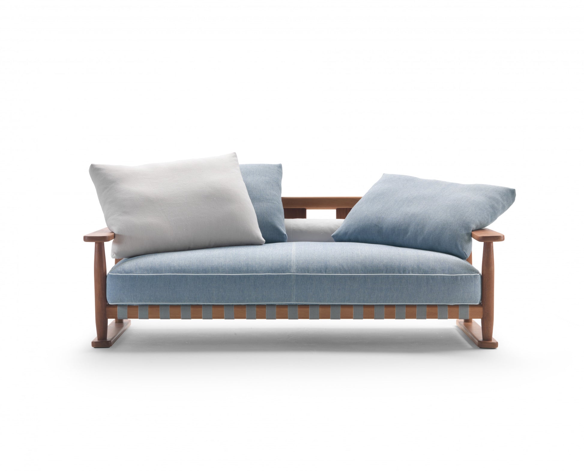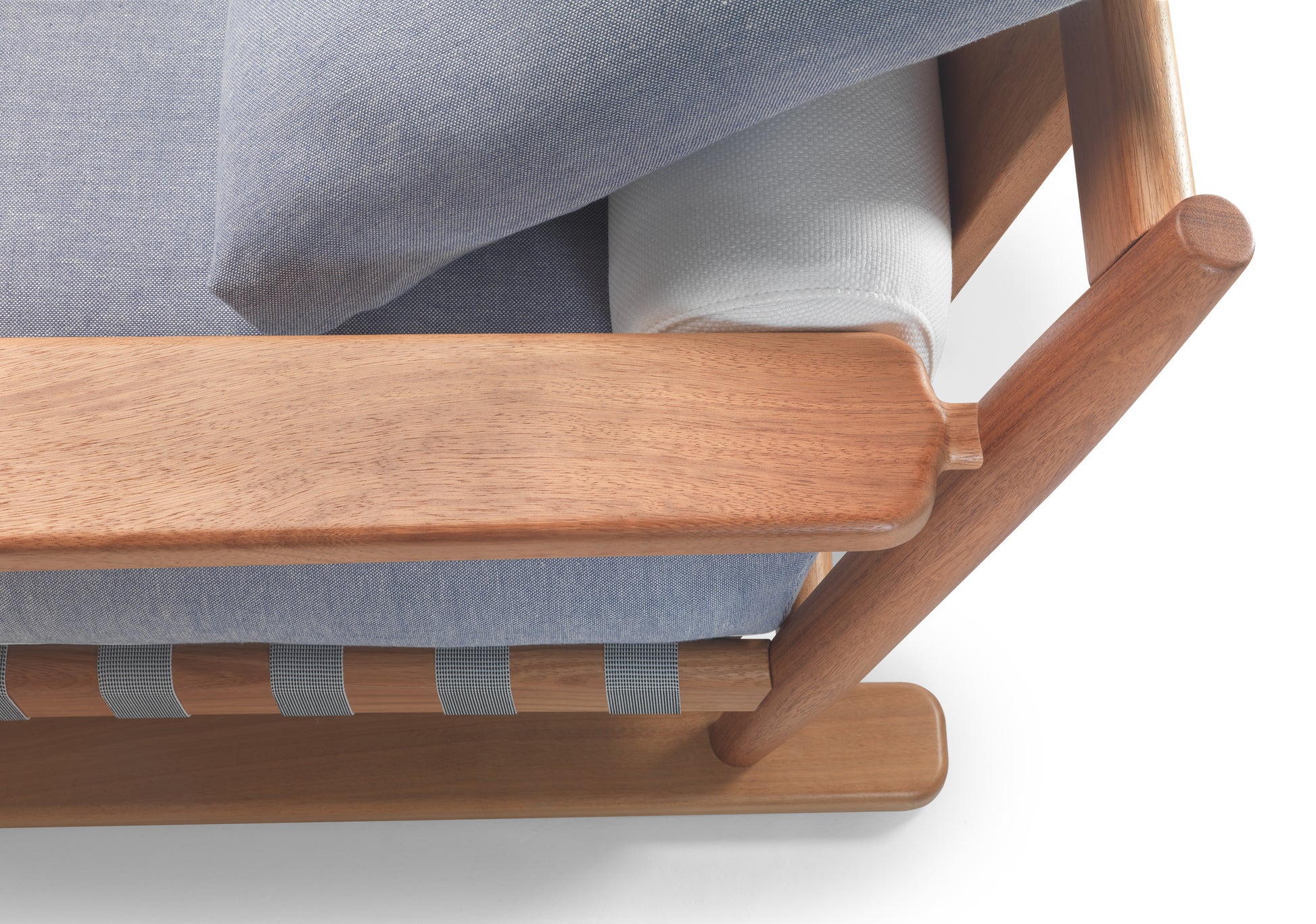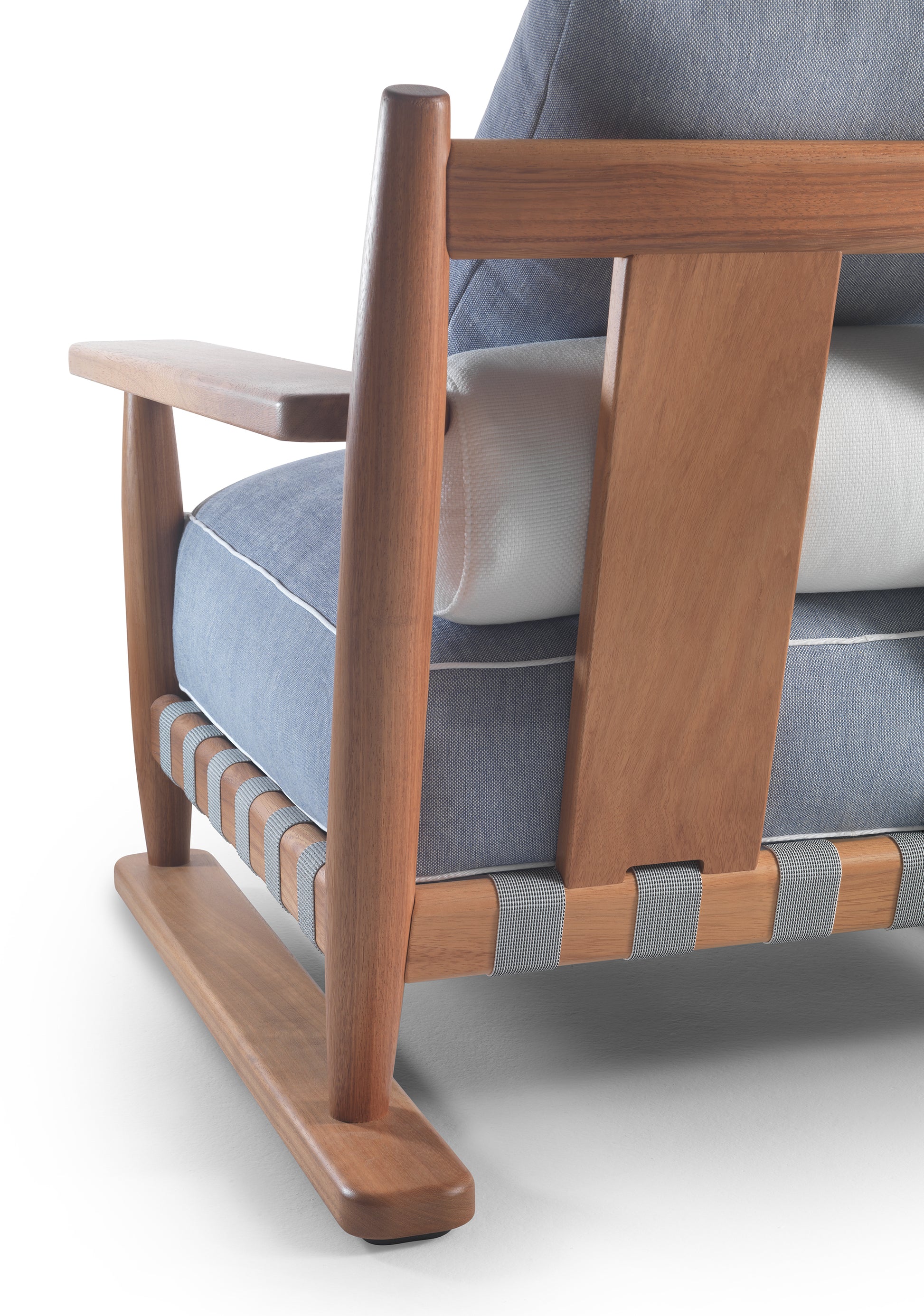 The Meriggio sofa has a bold personality that originates with the inherent beauty of iroko and its artisan craftsmanship.