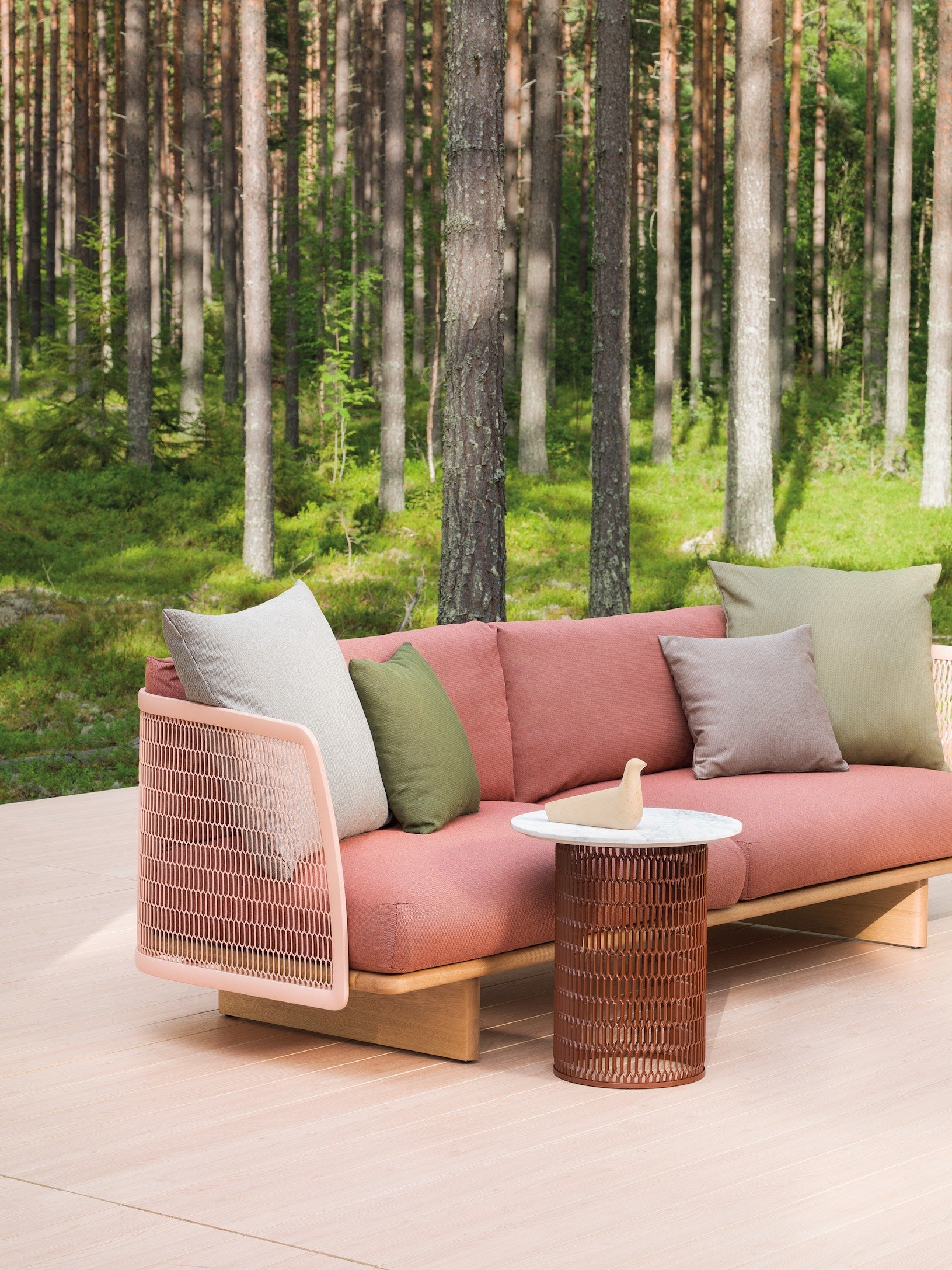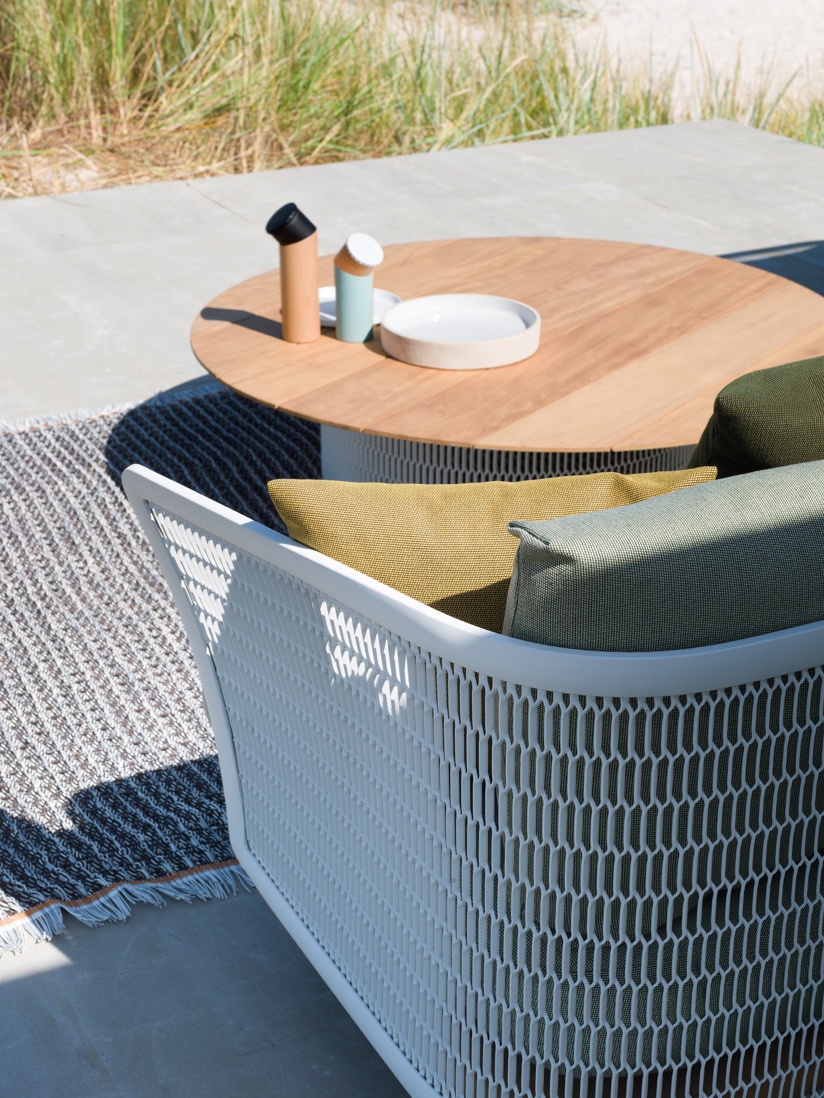 Kettal Mesh collection recalls architectural facades, which filter the surrounding environment without stopping the light and air flow. Industrial and natural materials, hard and soft surfaces, transparent and solid volumes are putted face to face in order to create this family of outdoor furniture based in contrasts.