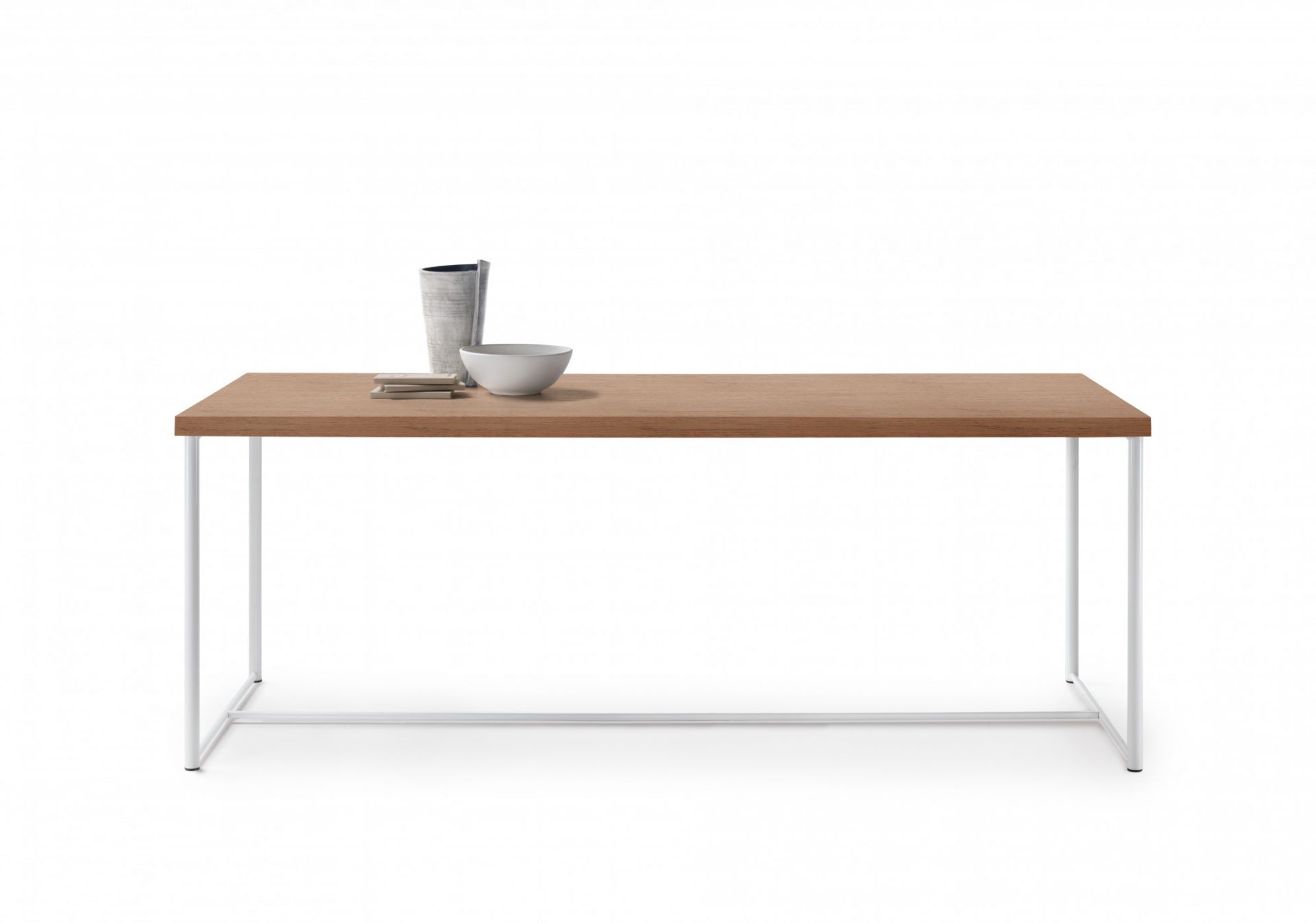 A historic collection of peerless modernity – composed of a chair, a table and a display cabinet – designed in 1939 and first produced in 1985, of remarkable design impact, reflecting the tenets of the purest Rationalism. The chair with its very slender structure in metal tubing has a woven seat in cord or cowhide. The table has a wooden or glass top on a metal base. The display cabinet, with structure in solid wood, features sliding panes of glass on the front. The back and shelves are also in glass, making it a light, essential presence. A collection for design lovers and fans of the artistic avant-gardes of the 20th century.