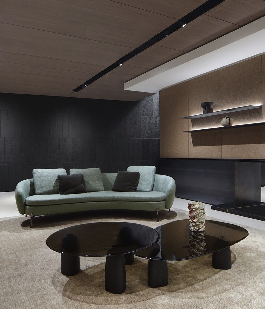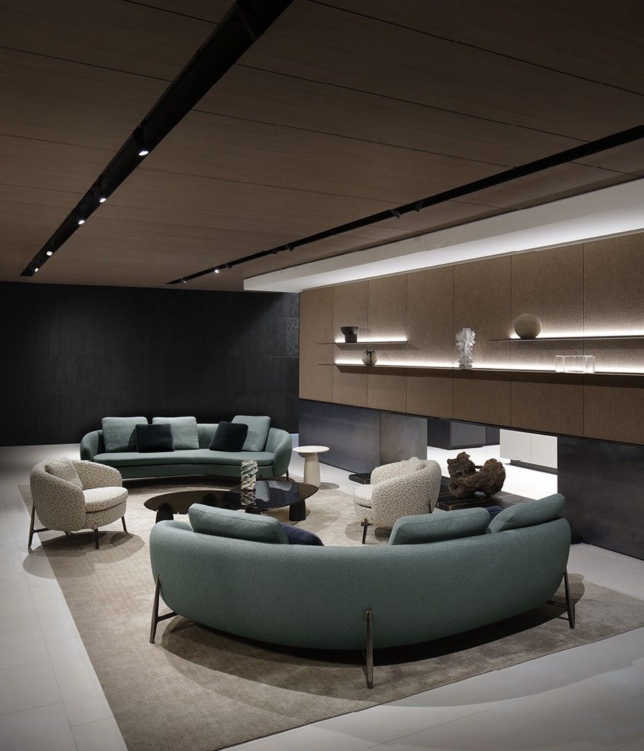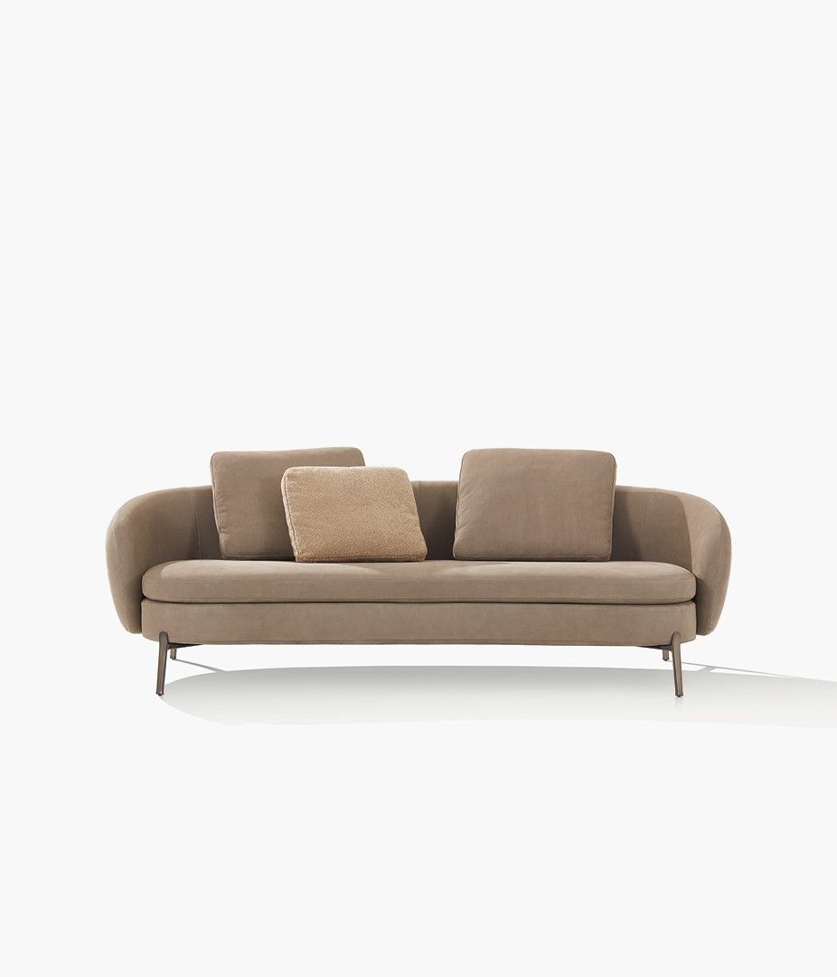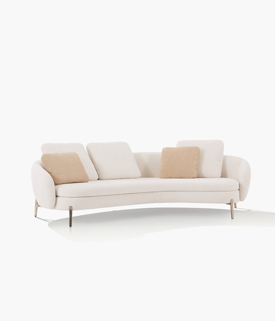 With its curved lines and soft forms, Orbis designs an intimate and cosy space within the living room. The collection consists of two sofas and an armchair with an enveloping backrest,
