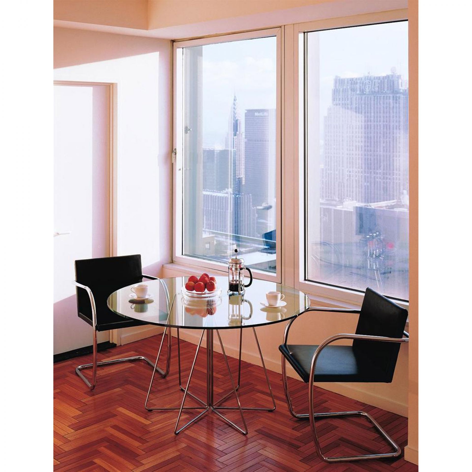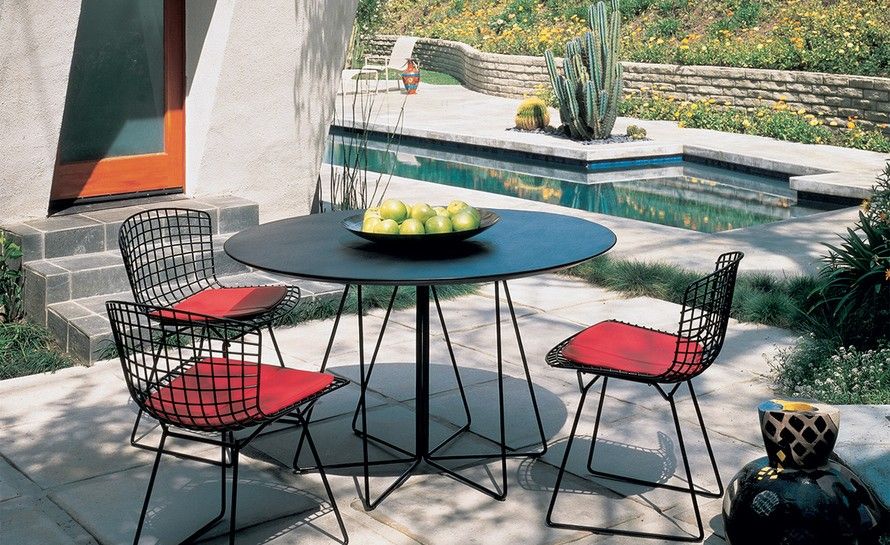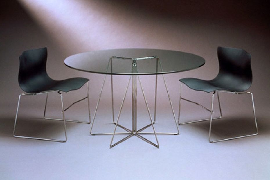 Designed as a companion to the Handkerchief Chair and Bertoia Collection, the PaperClip Table by Lella and Massimo Vignelli uses the same material vocabulary to achieve a similar lightness and elegance.
