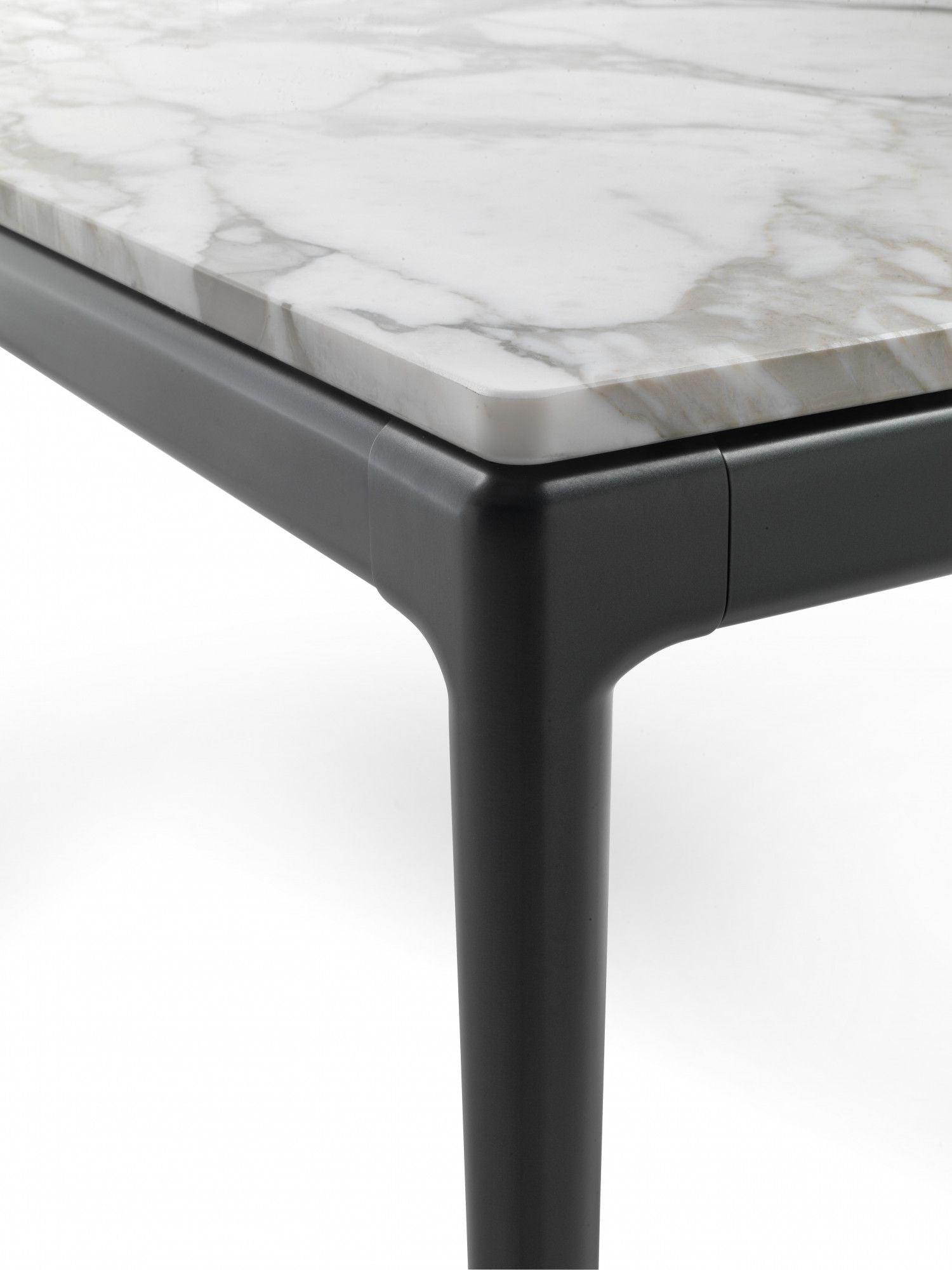 The elegantly tapered legs of the Pico dining table lend it fluid dynamism and a clear sense of visual lightness. Made of cast aluminum, the legs come in a number of stylish finishes, while the no-sharp-edges top can be made from various types of marble; or made of wood veneered with Canaletto walnut or ash in a variety of finishes.
