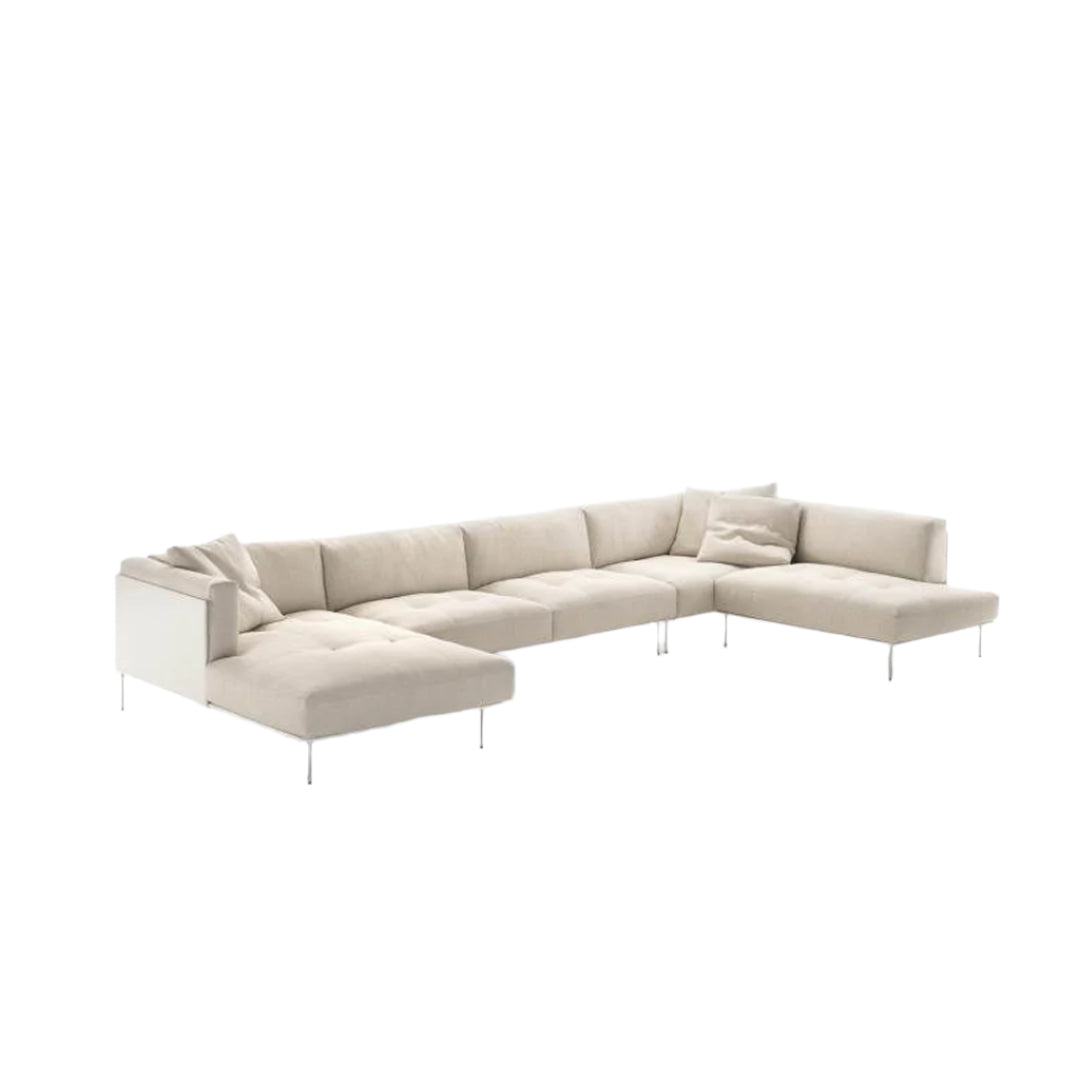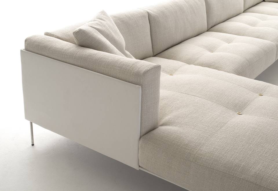 Rod, characterized by slender back and light, airy shell, lined with inviting cushions enhanced with quilted details and buttons at sights, is now available in the modular version to build new spatial solutions and original compositions.