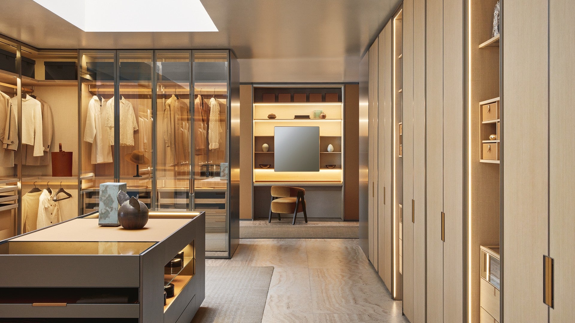 Senzafine is more than a wardrobe. It is a system that is constantly being enhanced with new aesthetic and functional solutions. The modular structure is designed to create customized solutions, ideal for any architectural design. The structure is composed of side frames, also available in glass, back panels, tops, bases and shelves, to which may be added different types of doors for hinged, sliding, coplanar or external drawer opening solutions. Ultimate freedom in the choice of finishes, from melamine to the most precious surfaces, such as glass, which may be applied to sides, back panels and doors to create exclusive display case wardrobe structures. Drawer units, fixtures and accessories complete an evolutionary range capable of adapting to any space.