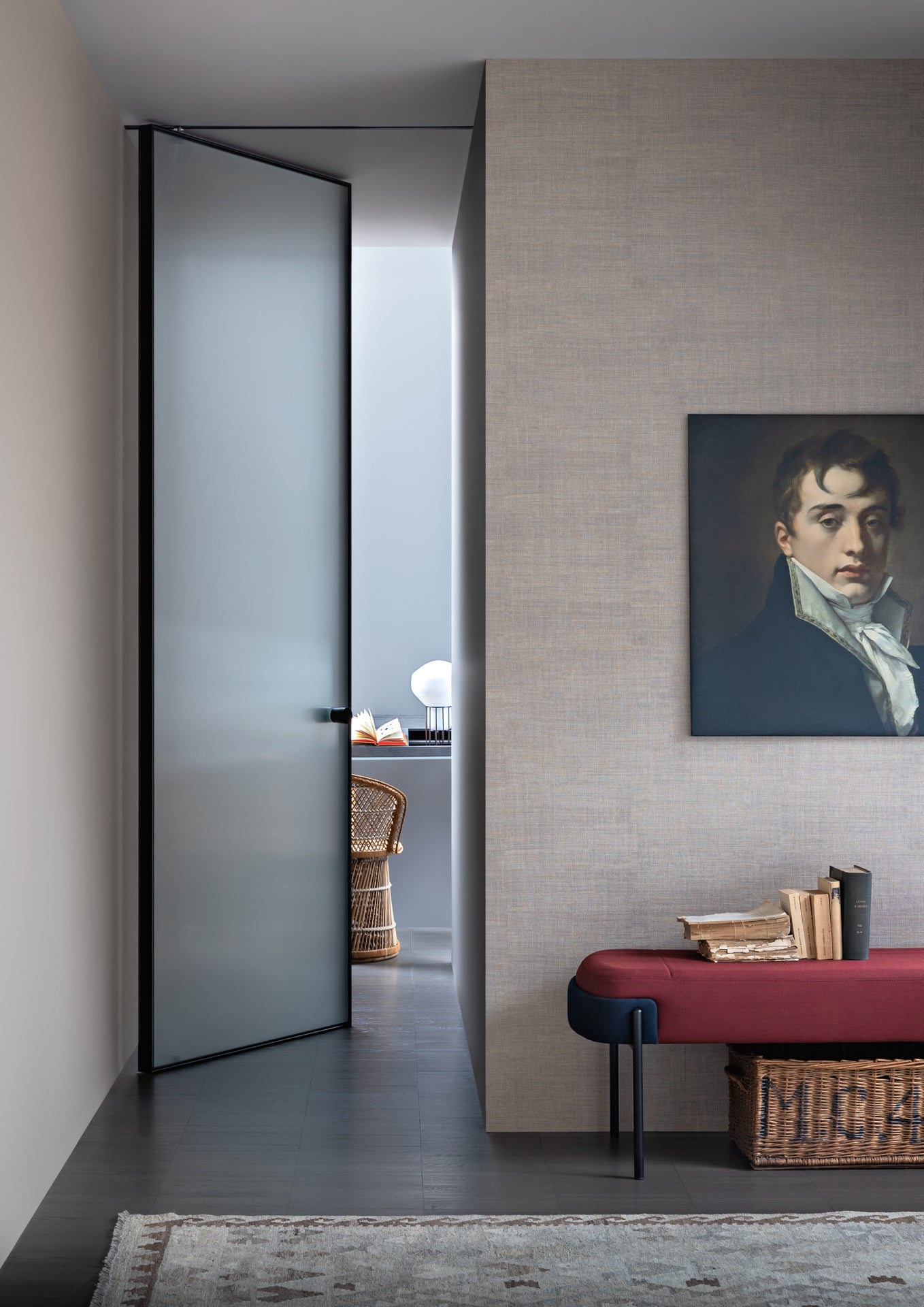 Shoin Pivot is much more than a simple internal door: it is an advanced partition system that delimits the spaces of your home or office with a solid and yet almost intangible presence.