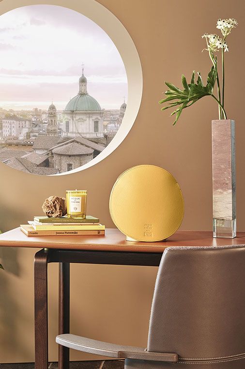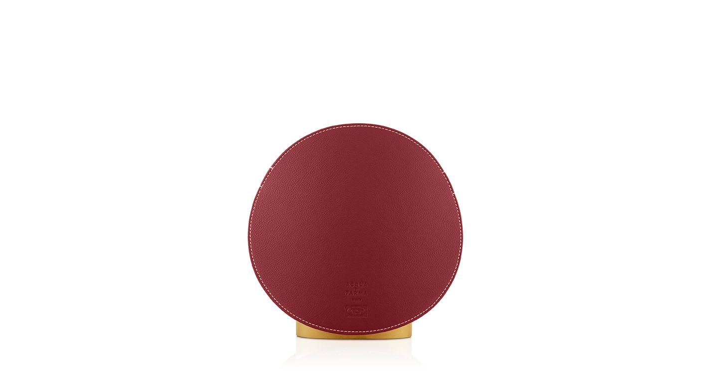 The case is available in the colours yellow, dark grey and brown, designed to harmoniously match the grey body interior. The "Acqua di Parma meets Poltrona Frau" logo features at the centre of the diffuser.