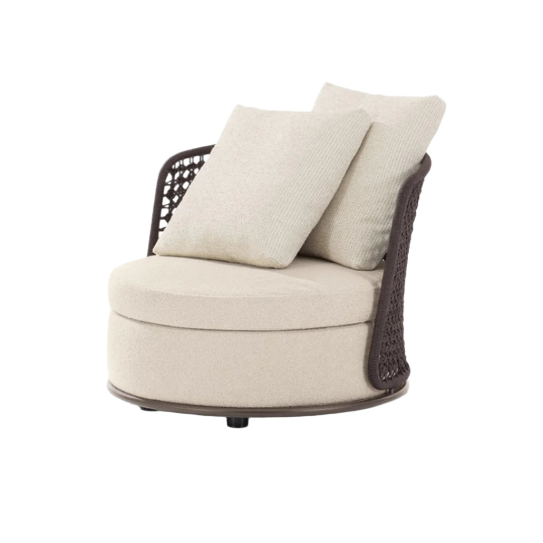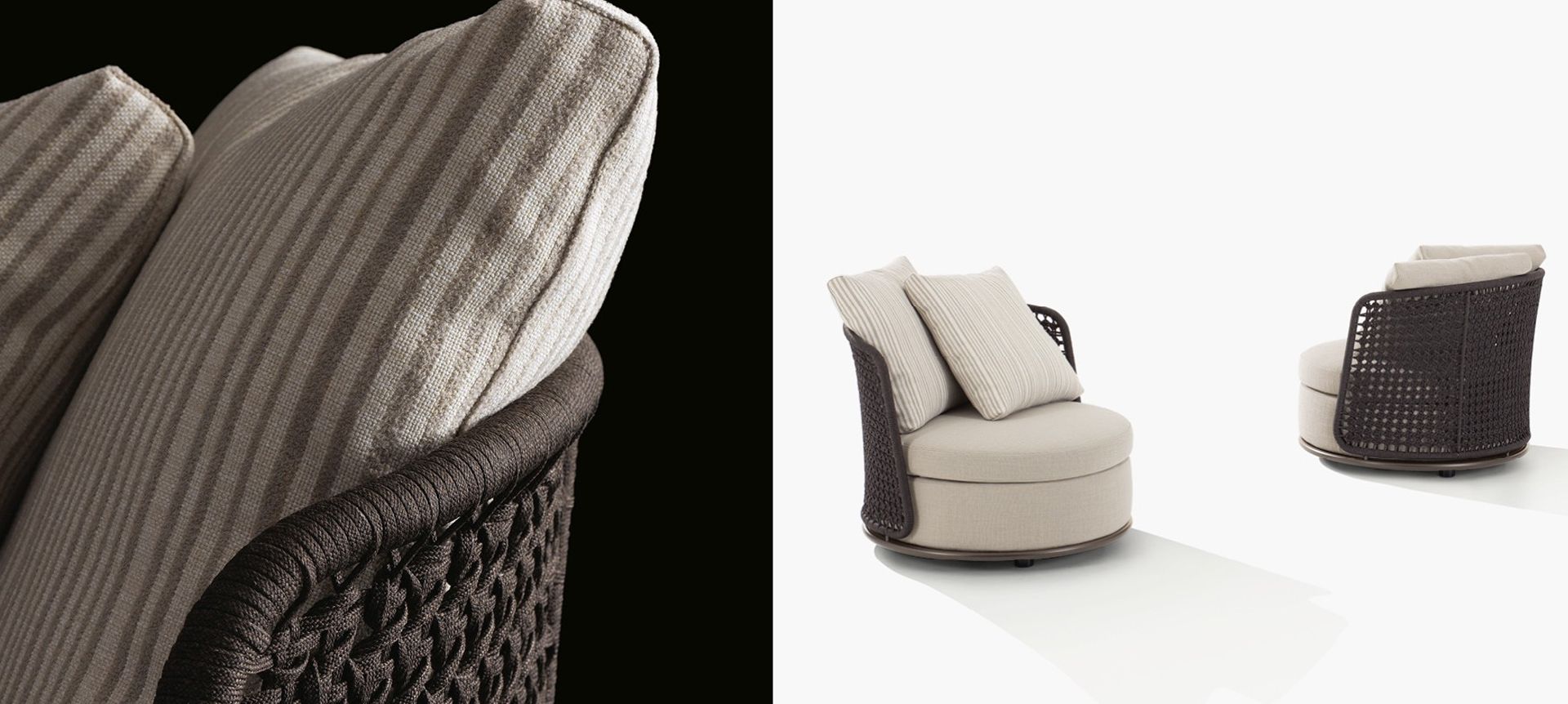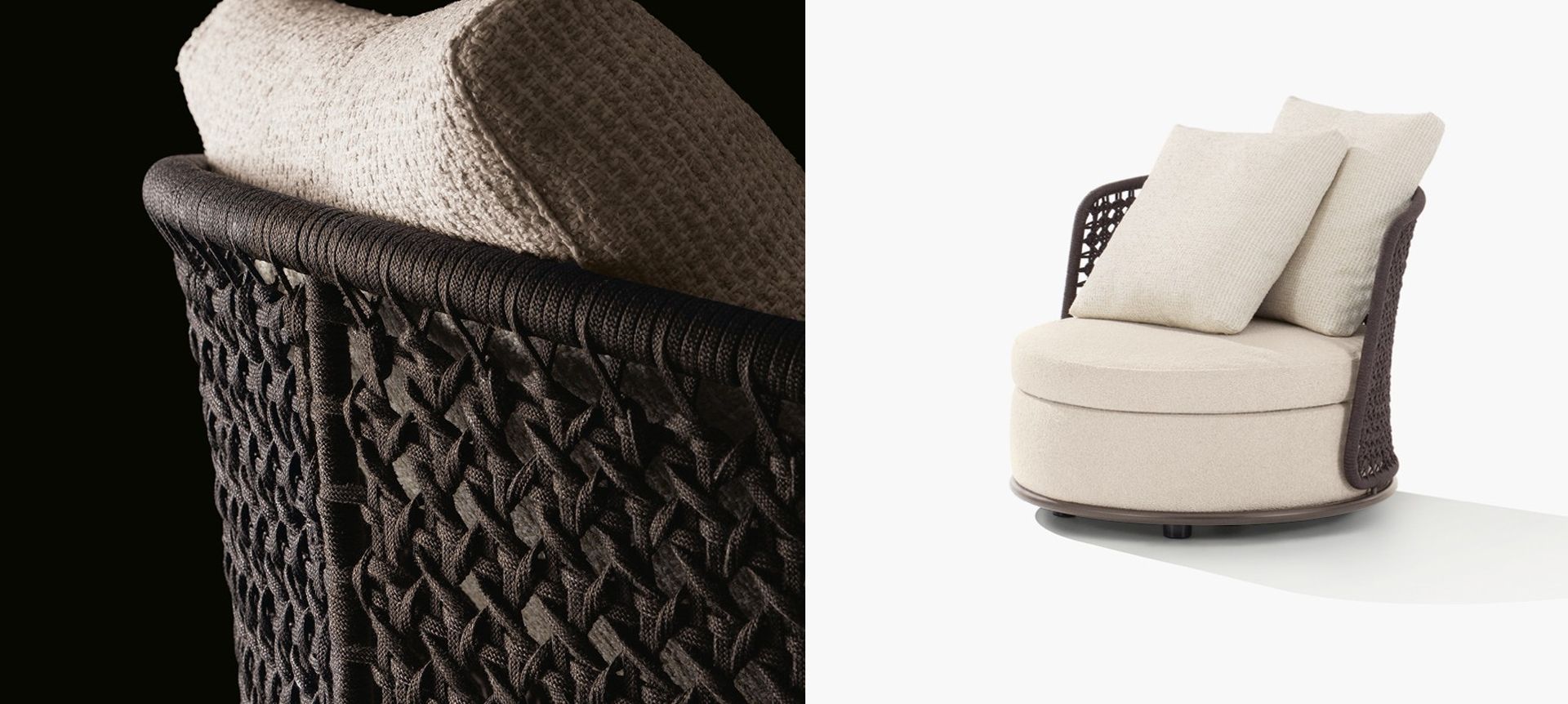 Soori Day is the conversational armchair that complements the outdoor collection designed by Soo Chan. Much like the Soori Day Lounge, it boasts a round and harmonious shape, designed to welcome guests with comfort and elegance.
