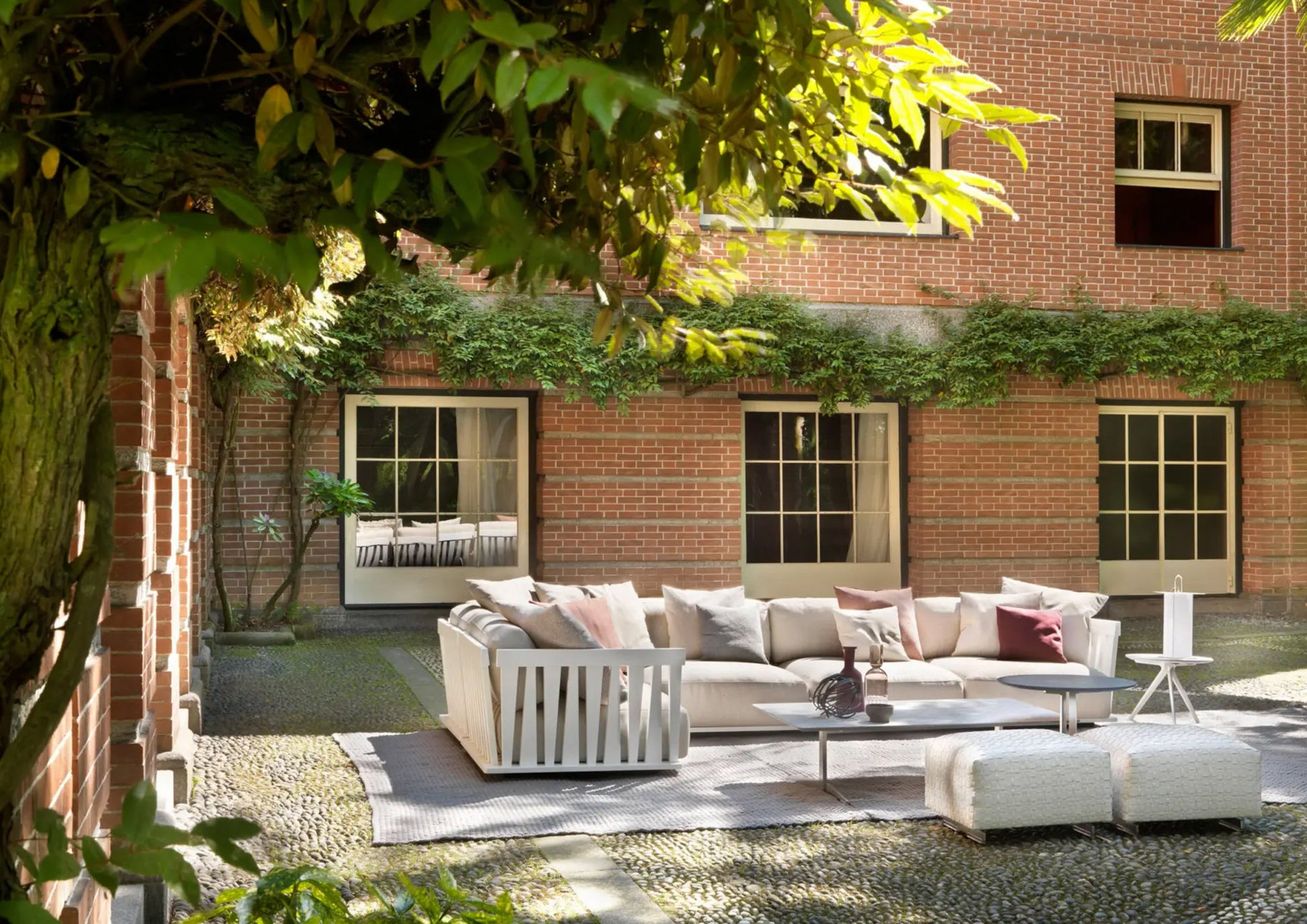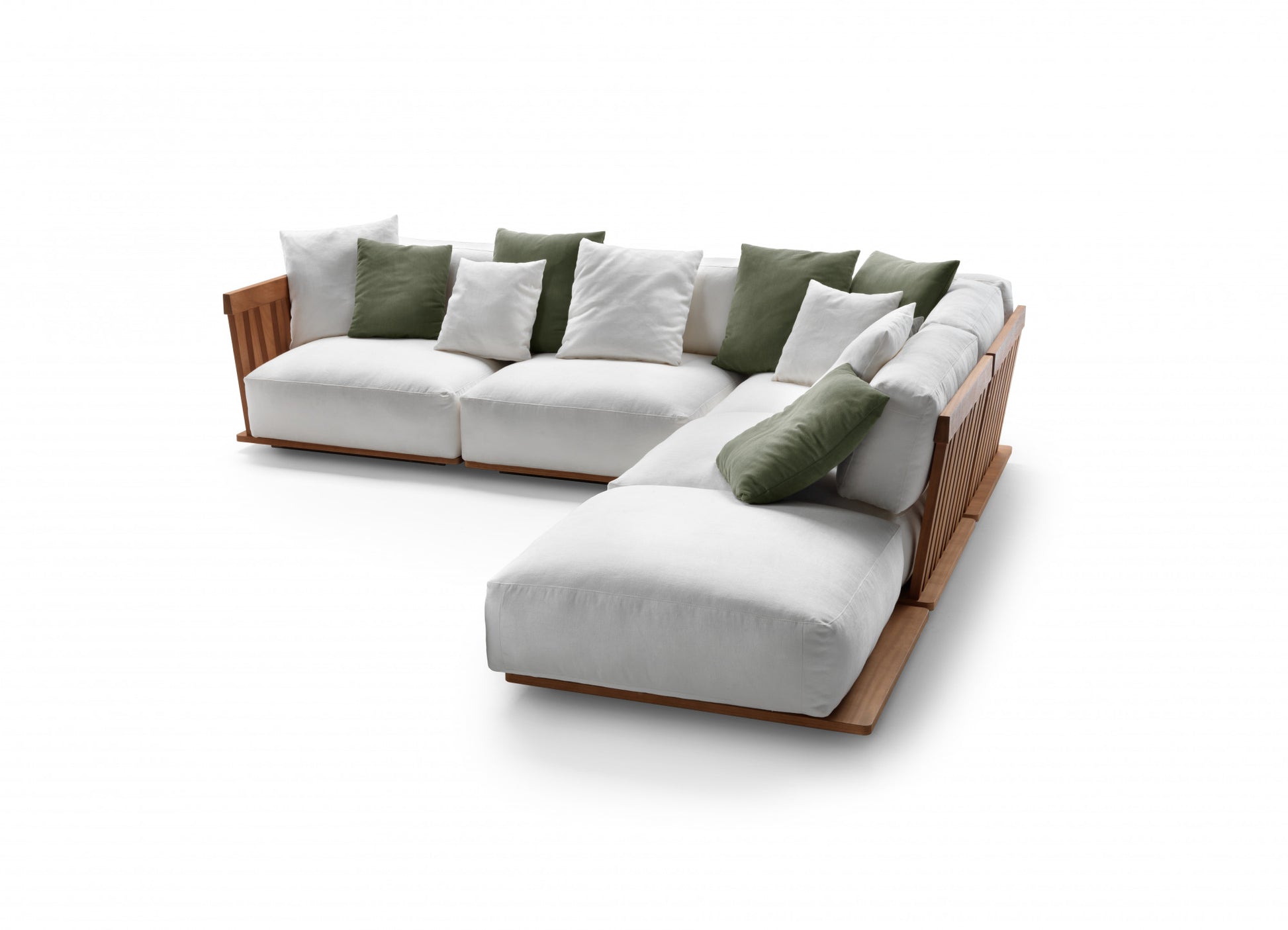 Zante is a seating system specifically designed for outdoor settings. It comes with two different seat depths which lend it amazing compositional flexibility. Aside from its outstanding versatility, the sofa is also known for the ease with which the elements can be disassembled and then stacked for safe storage at the end of the season or in case of necessity. The beauty and innate strengths of iroko – a type of wood that is highly resistant to weather conditions – inspired the concept for a collection of outdoor seating pieces that, in the finest Flexform tradition, combine understated elegance and great comfort. And they are now ready to decorate decks and patios in a manner perfectly in keeping with the style of the indoor rooms.