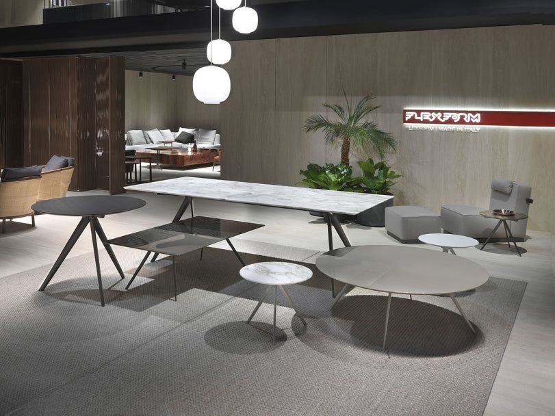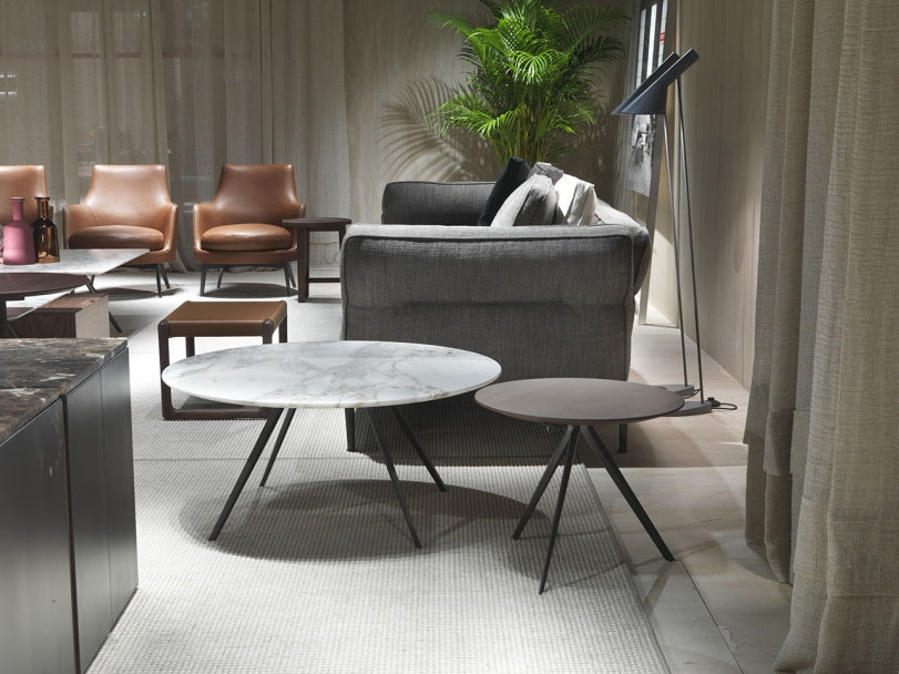 A light, contemporary edge defines the generous collection of Zefiro coffee and side tables. Extremely versatile, thanks to the wide range of sizes and materials in which they can be crafted, the Zefiro coffee and side tables can confidently and stylishly furnish any setting. The tapered cast-aluminum legs, available in an array of elegant finishes, lend an air of lightness and dynamism to the table. The tops come in round, square or rectangular shape in a number of different sizes and can be crafted in veneer, in an array of sophisticated shades; or in various types of luxurious marble.
